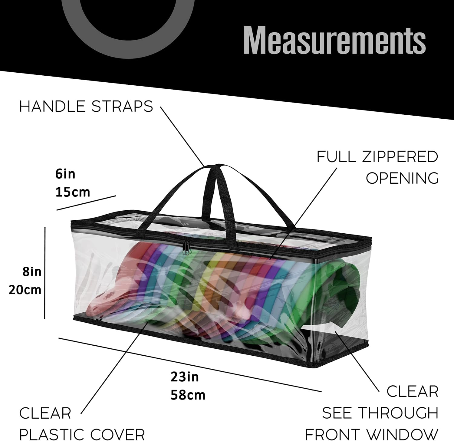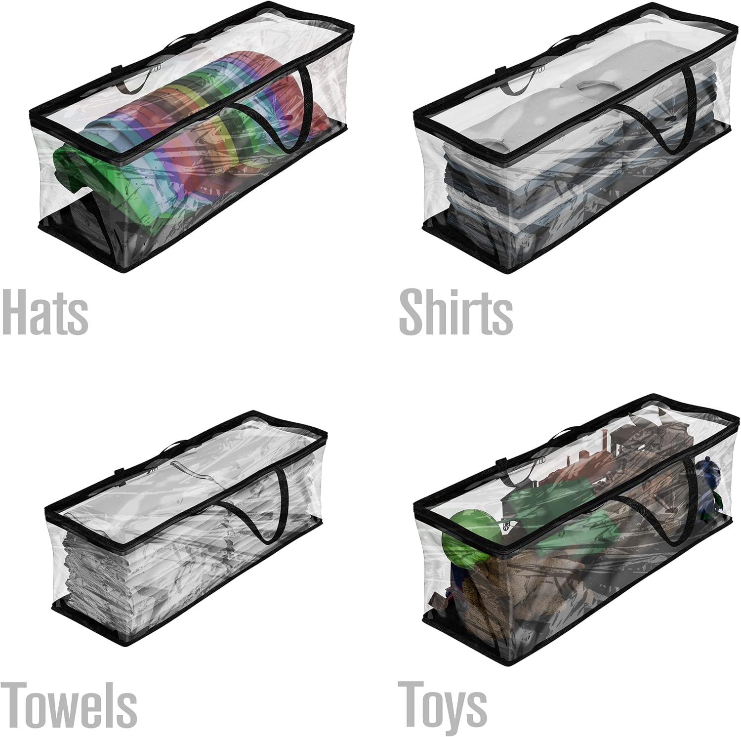 Each bag comes with a wrap-around zippered top and dual nylon webbed handles for easy access and portability. The bag’s thick bottom base makes it easy to stack each bag on top of the other for even greater space-saving storage. Once you have filled the bag to your liking, it will sit steadily on any shelving unit, in your closet, atop your dresser, underneath your bed, or wherever you prefer to keep your storage bags. Your only regret