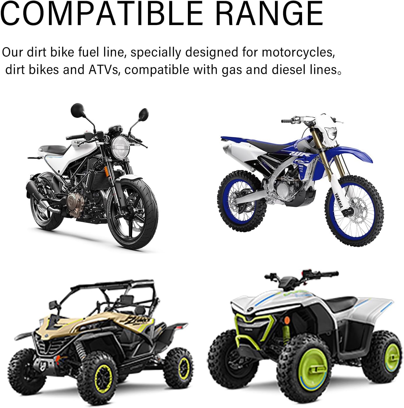 Compatible Range: Our dirt bike fuel line, specially designed for motorcycles, dirt bikes and ATVs, compatible with gas and diesel lines, to keep that every journey power surging, your essential motorcycle accessories