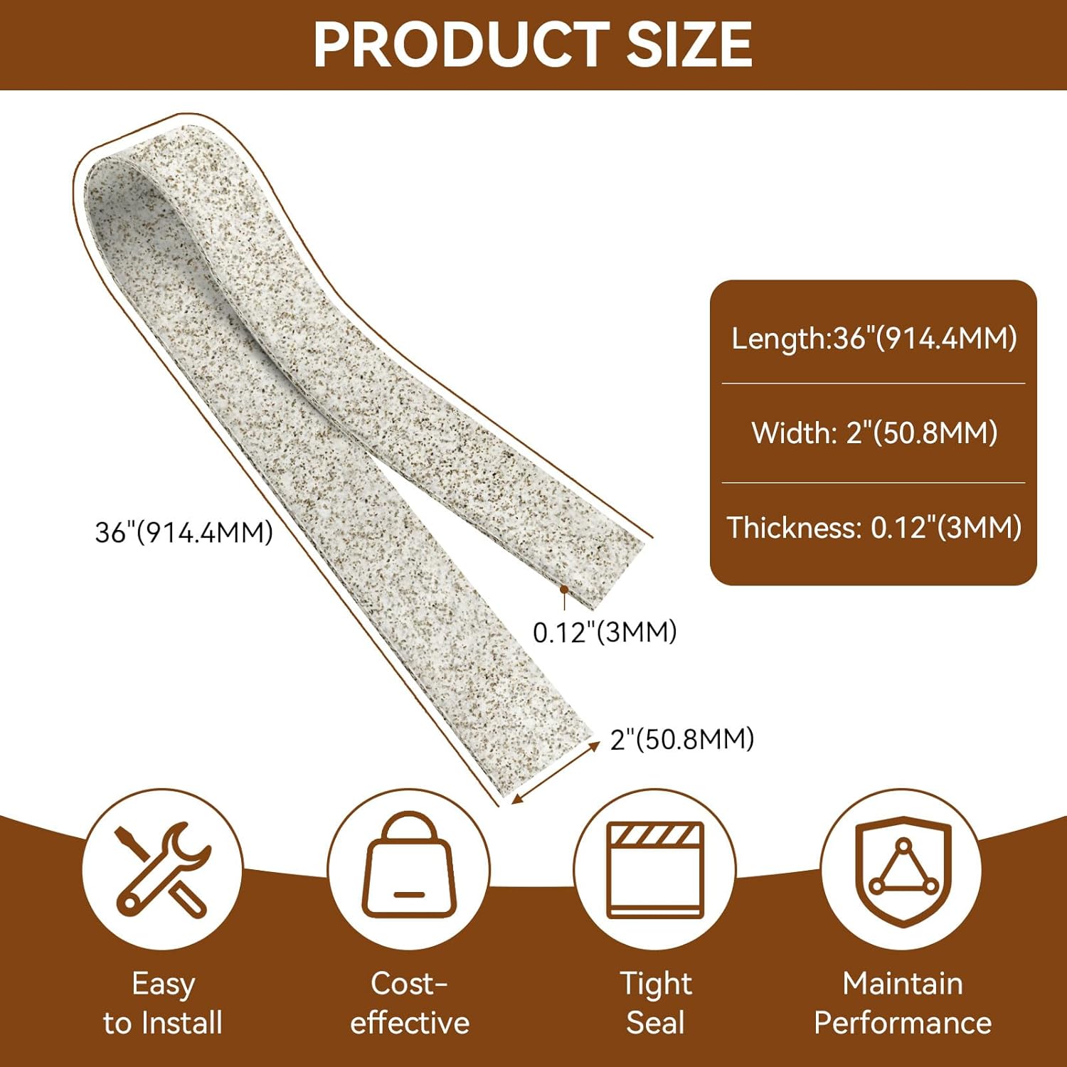 【Interam Expanding Gasket Size】 Interam gasket for dutchwest stove is measures 36 inches in length, 2 inches in width, and 0.12 inches in thickness. The package contains a roll of expansion gasket and does not include masking tape.