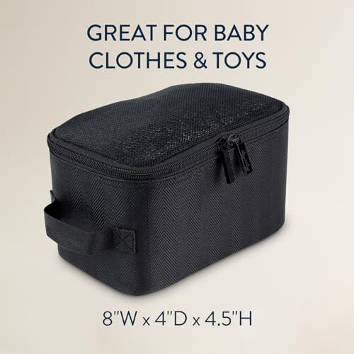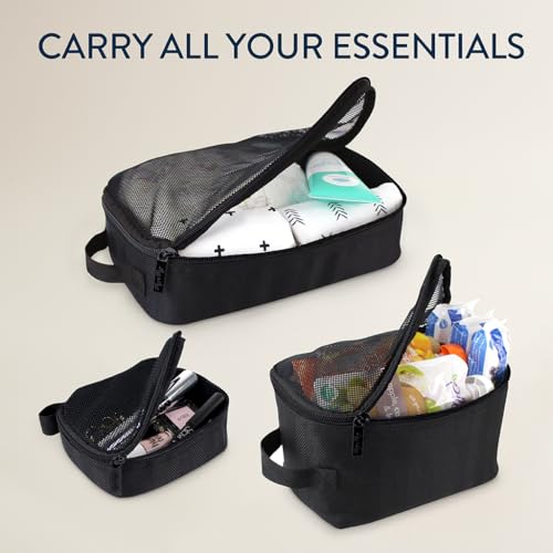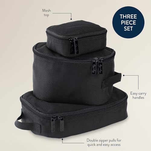 Itzy Ritzy Packing Cubes for Travel – Set of 3 Packing Cubes or Travel Organizers; Each Cube Features a Mesh Top, Double Zippers and a Fabric Handle (Black with Black Hardware)
