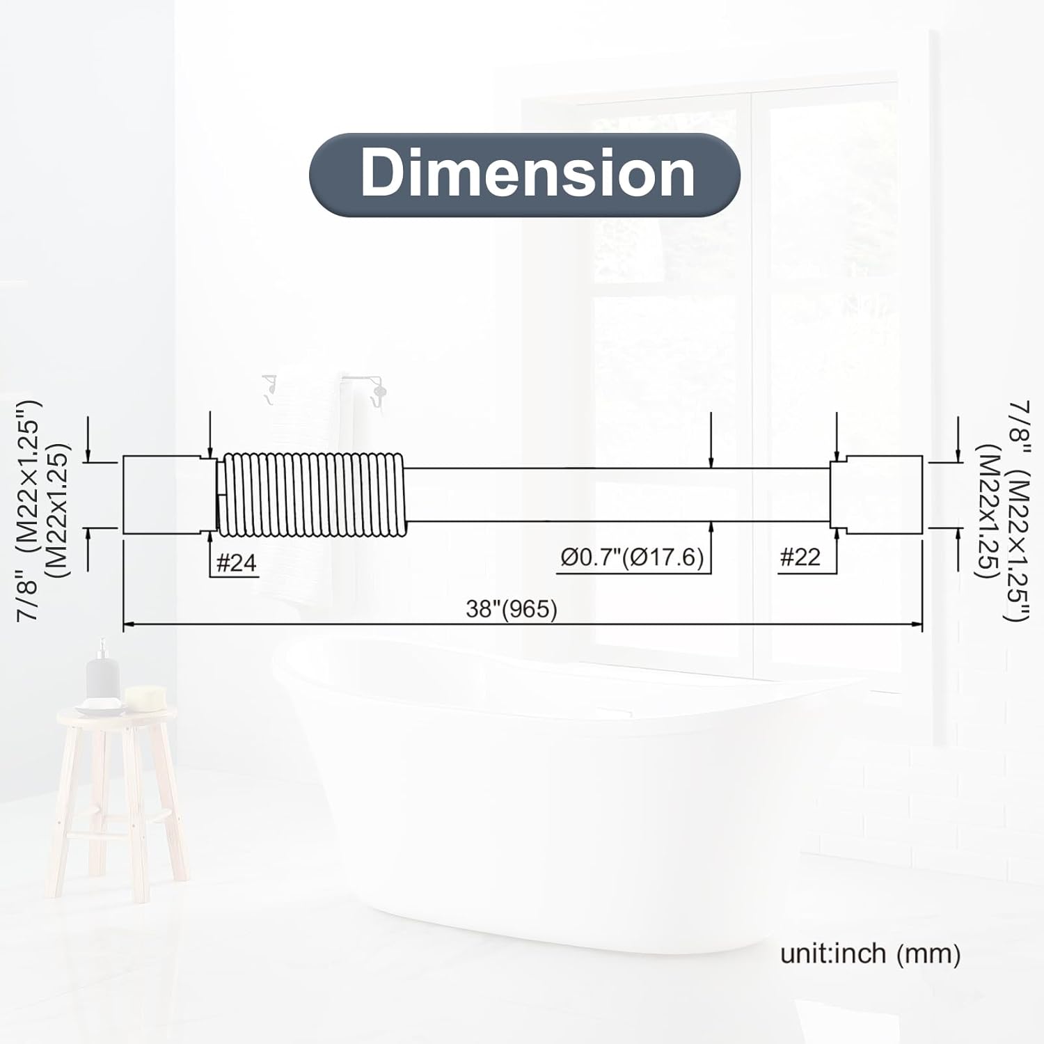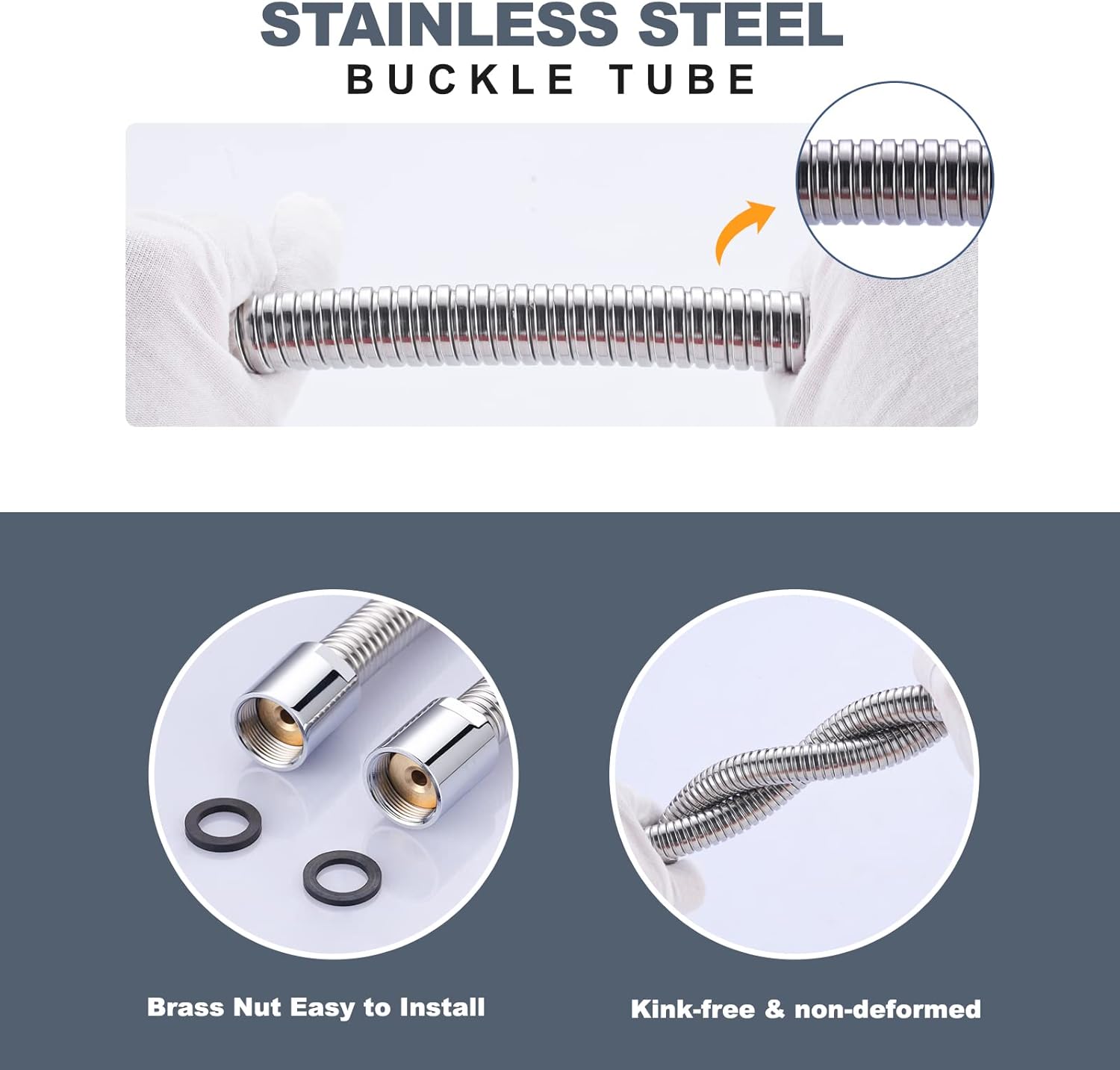 【Low Leakage】The 38inch faucet hose comes with double ring sealing washer, ensuring no water leakage, solid brass connector, ensuring quality and longevity.