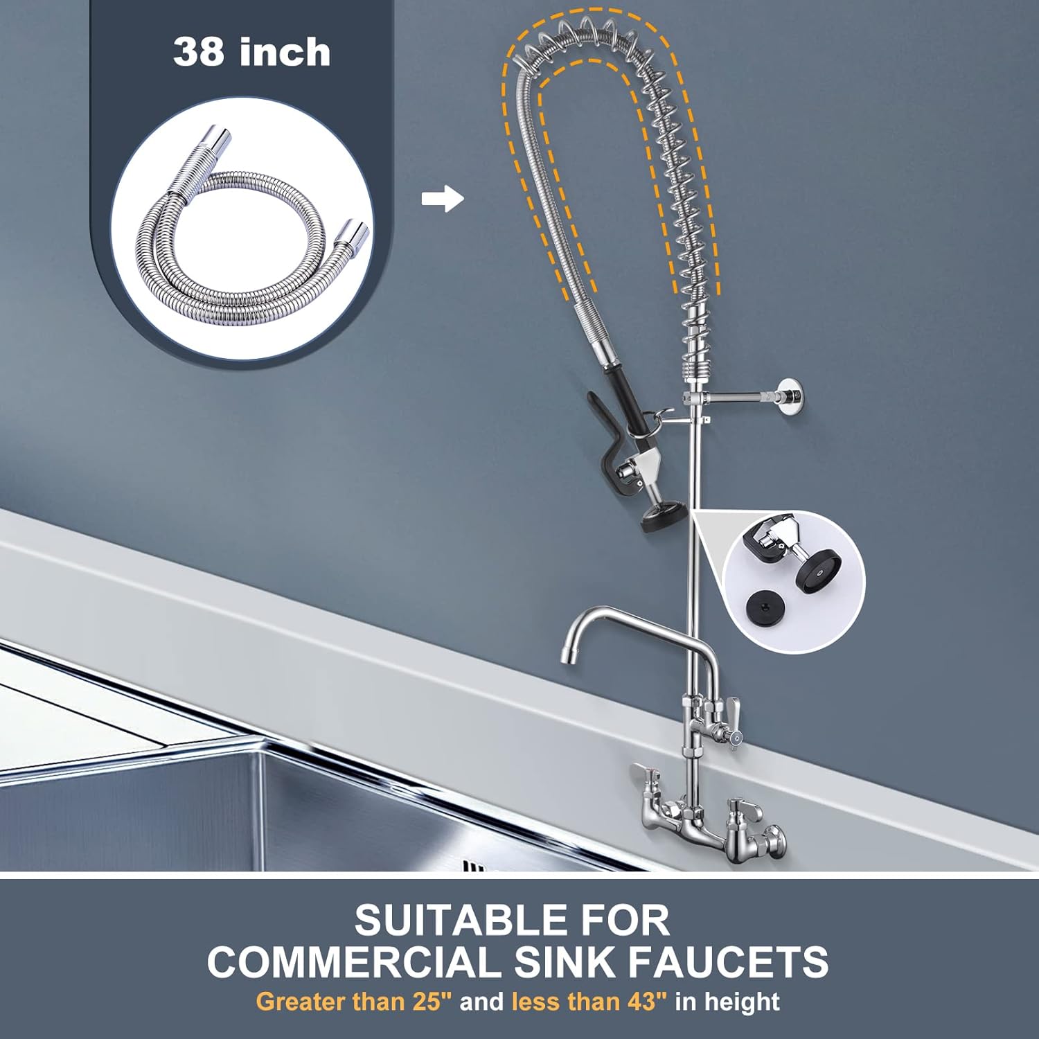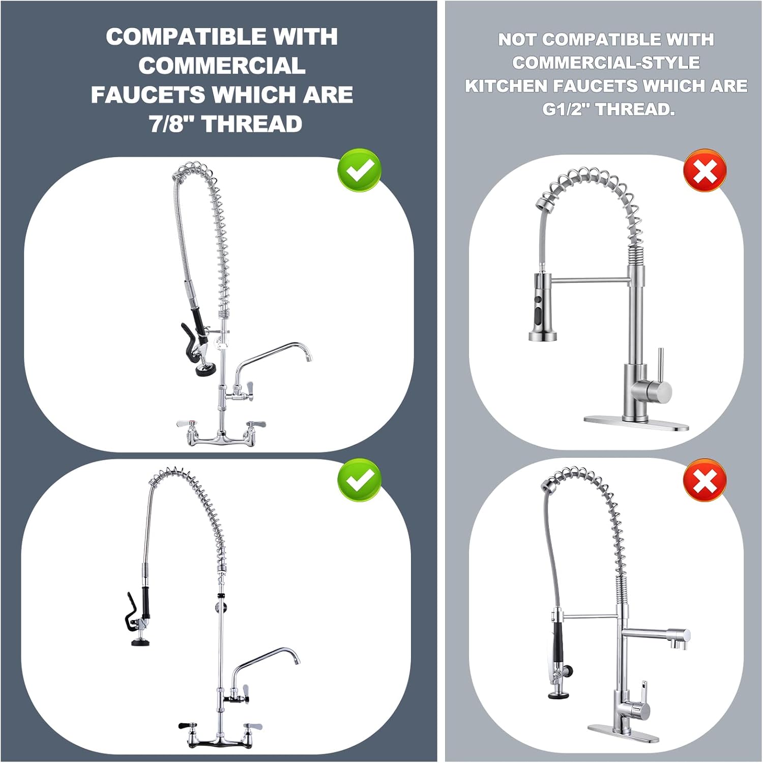 【Flexible Stainless Steel Hose】The connector with rotatable parts so that the hose will not twine, just buy this hose to repair you a commercial faucet better than frequency purchasing new faucet. Pre rinse spray hose suitable for all brand