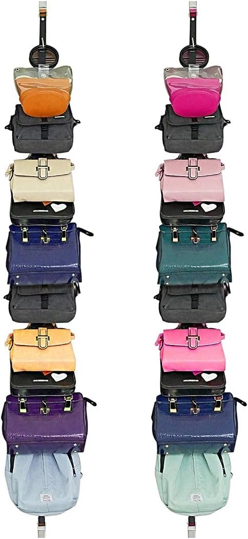 Handbag organizer :The stainless steel hook on the handbag organizer can easily Hangs over any closet rod and door.