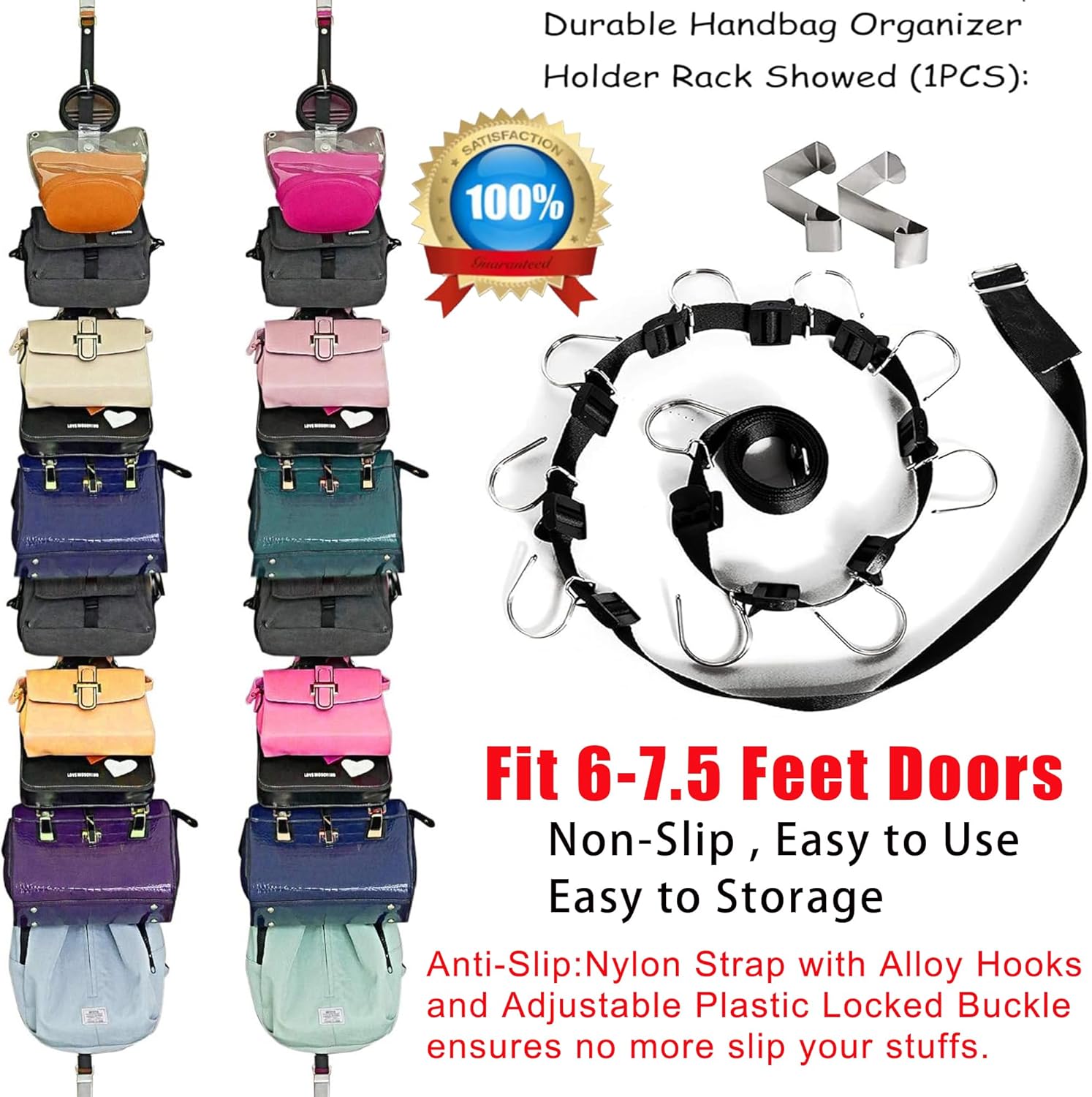 Handbag organizer :The stainless steel hook on the handbag organizer can easily Hangs over any closet rod and door,No tools required, just hang it up.The hook is very sturdy, will not falling down.