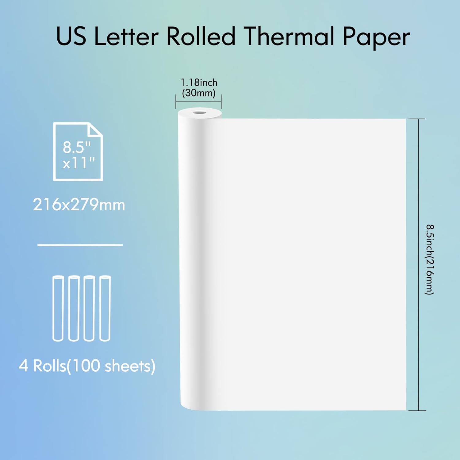 Package Specifications: Discover the abundant supply with 4 Rolls of JADENS thermal paper, all standardized to the US Letter Paper Size – 8.5” x 11”.