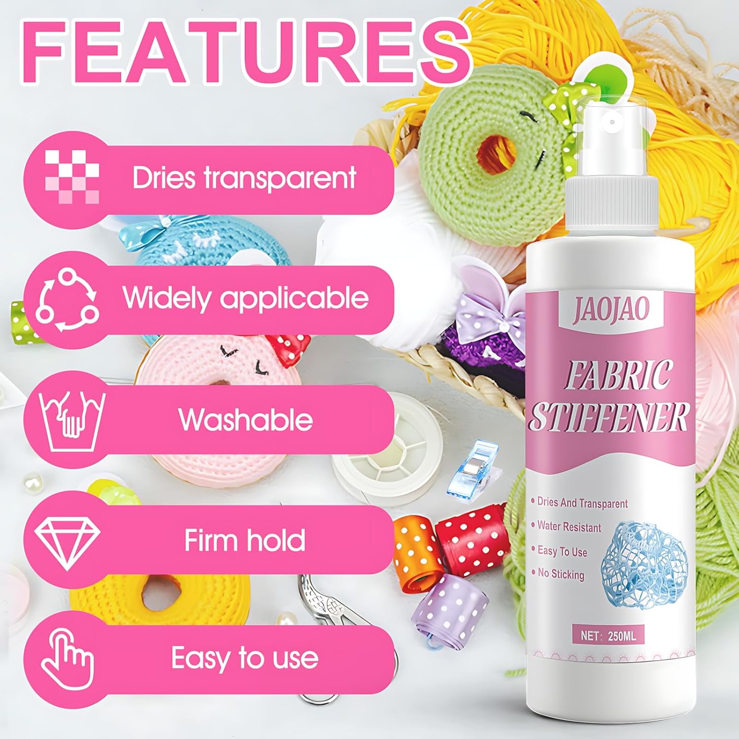 Convenient to use: Fabric stiffener for crochet spray and use, no need to soak, spray vertically and dry naturally or iron at low temperature, saving time and effort. Great for Bow Making, Macrame, Crafted Ghost Decor