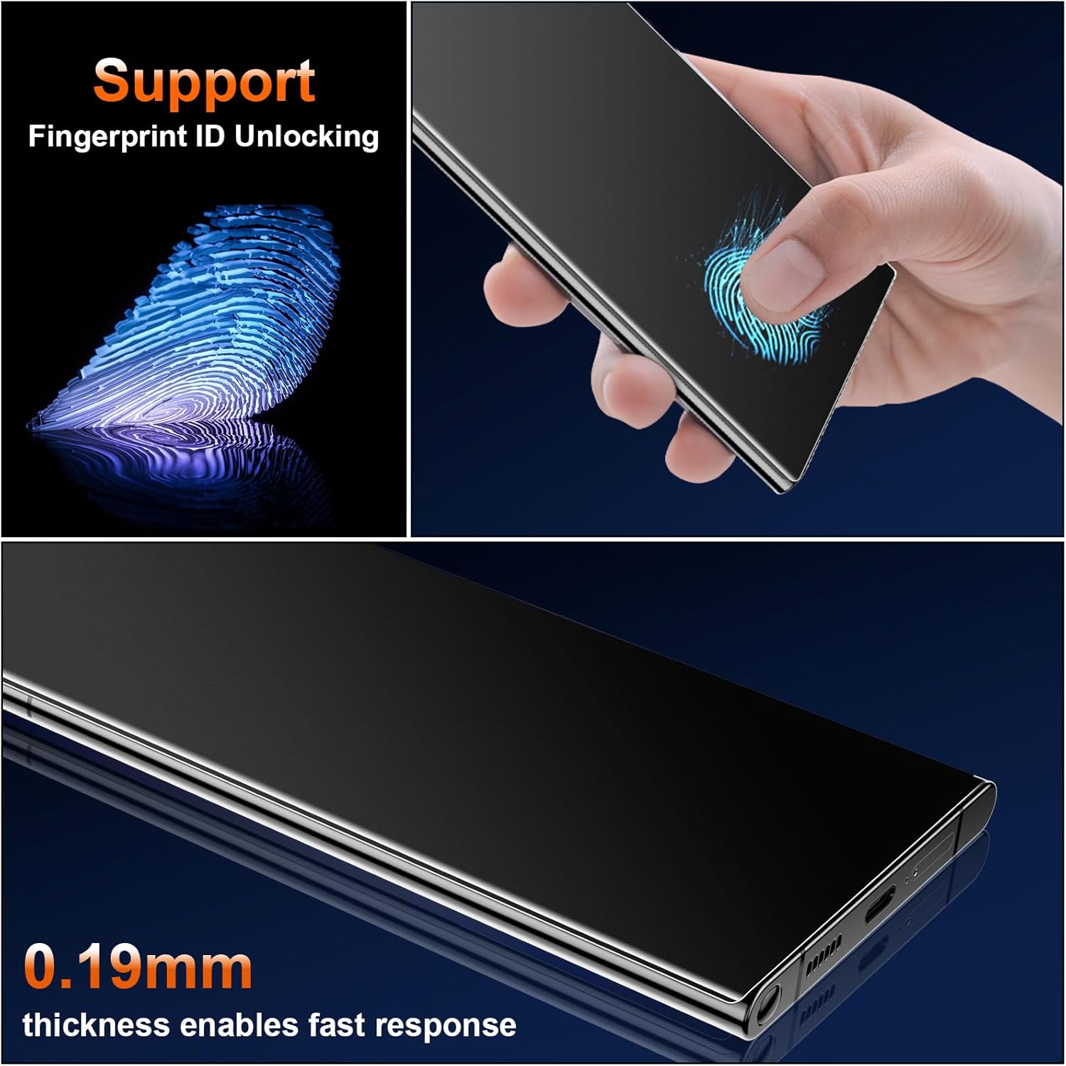 【Support Fingerprint Recognition】Ultra-thin film provides fast touch response. Advanced nano-glue and full glue coverage, and interact with ultrasonic sensors to support fingerprint in-screen fingerprint sensor function. Tips: Please re-enter your fingerprint after you apply the screen protector.