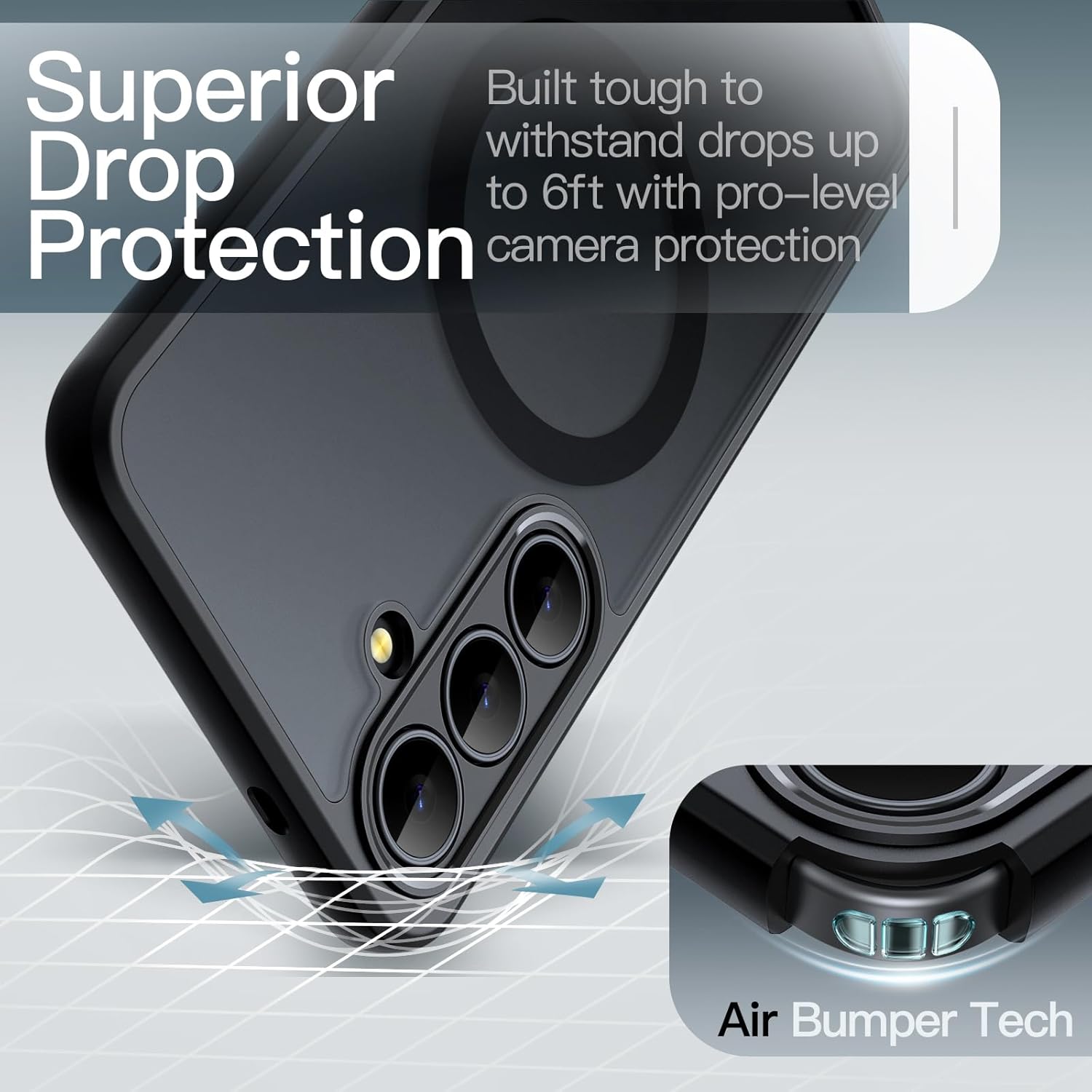 [Highly Shock-Absorption] Constructed into a durable hybrid case of shockproof TPU bumper and hard PC back with reinforced cornered cushions, protect your phone against shocks caused by accidental scratches, drops and bumps