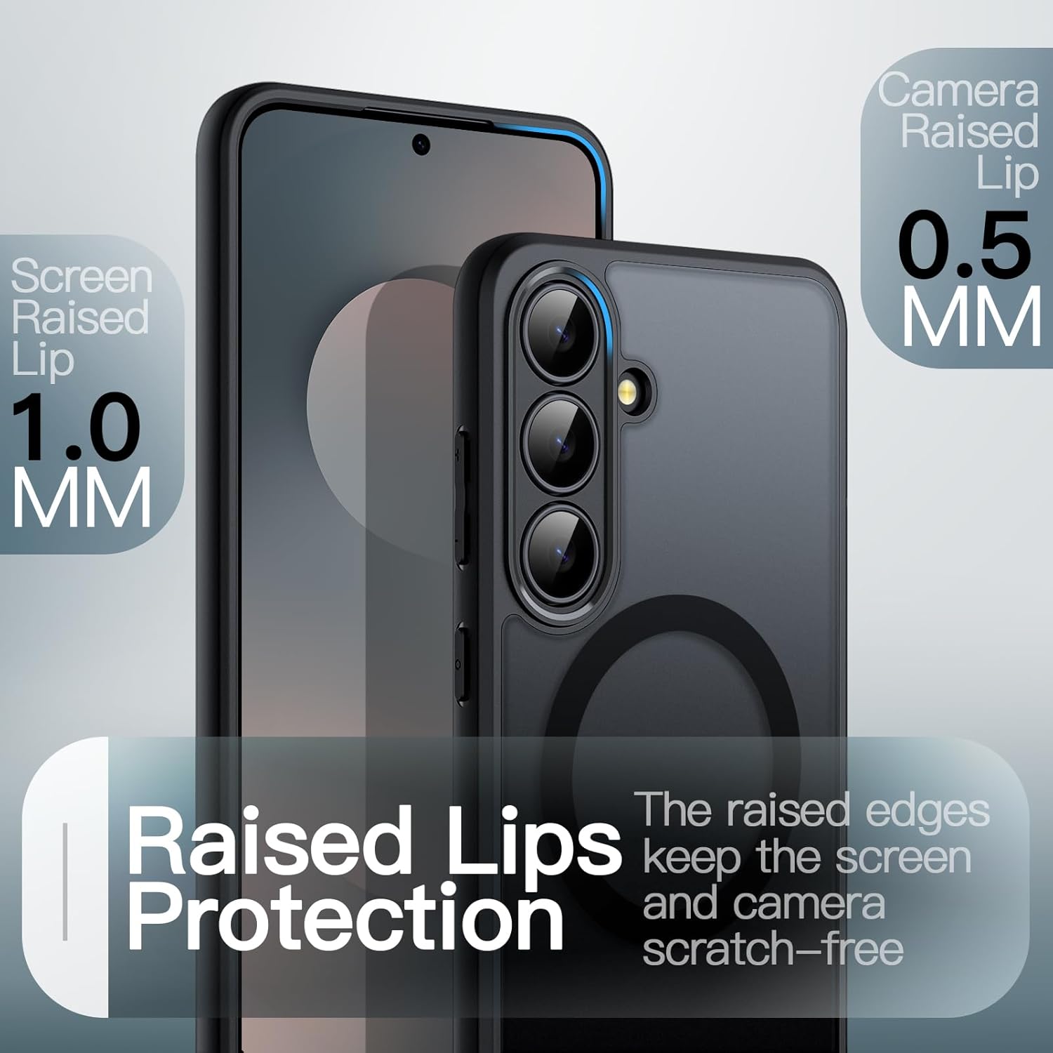 [Raised Edges Protection] Features raised edges around the screen and camera, preventing surface scratches whether the phone is placed face down or back down