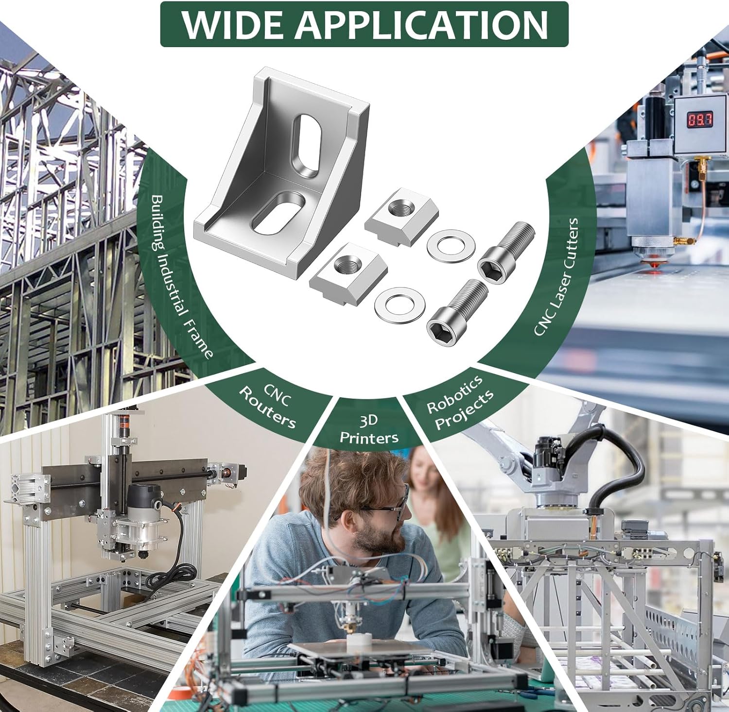 【Wide Application】4040 4080 Series aluminum profile connector set is extensively utilized in constructing industrial aluminum frame structures, 3D printers, CNC routers, CNC laser cutters, and robotics project