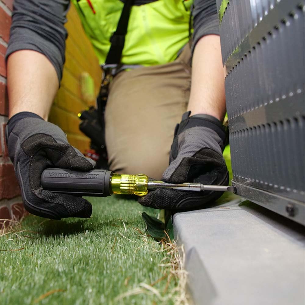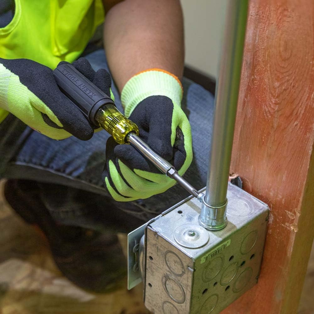 Our extended-reach multi-bit screwdrivers and nut drivers provide longer reach than traditional Klein multi-bit drivers for multiple common bits. The extra-long shafts also feature a small diameter for a more comfortable fit in tight spaces. Cushion-Grip handles provide superior torque and comfort. For more than 160 years, Klein Tools has manufactured premium-quality, professional-grade hand tools that deliver the performance, durability and precision needed to get the job done right. Our family of engineers, workers and craftsman continue to put six generations of expertise into every tool we create by using only the highest quality materials, superior workmanship, and keeping manufacturing as close to home as we can. Klein isn’t just the name of our company, it’s also our family name. And since we’re an American company that’s family-owned and family-run, you know you can count on us to be here tomorrow. Klein Tools doesn’t just make great products, we make great products that stand up to the demands of the professionals who use them every day … Since 1857.
