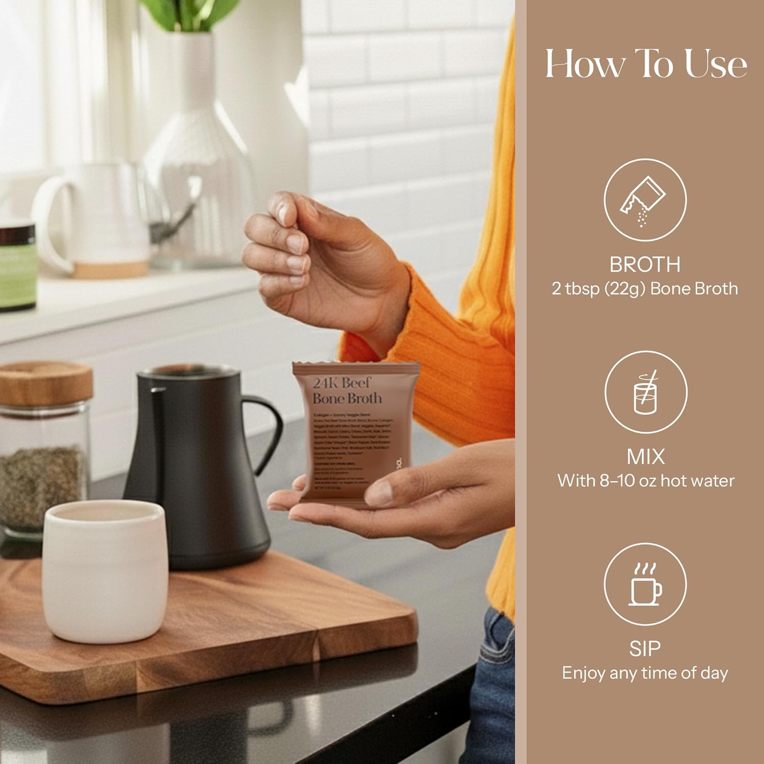 Nutrient-Rich Broth: Packed with 15g of clean protein per serving, this homemade-style beef broth protein powder adds a flavorful, satisfying boost to your daily wellness routine.