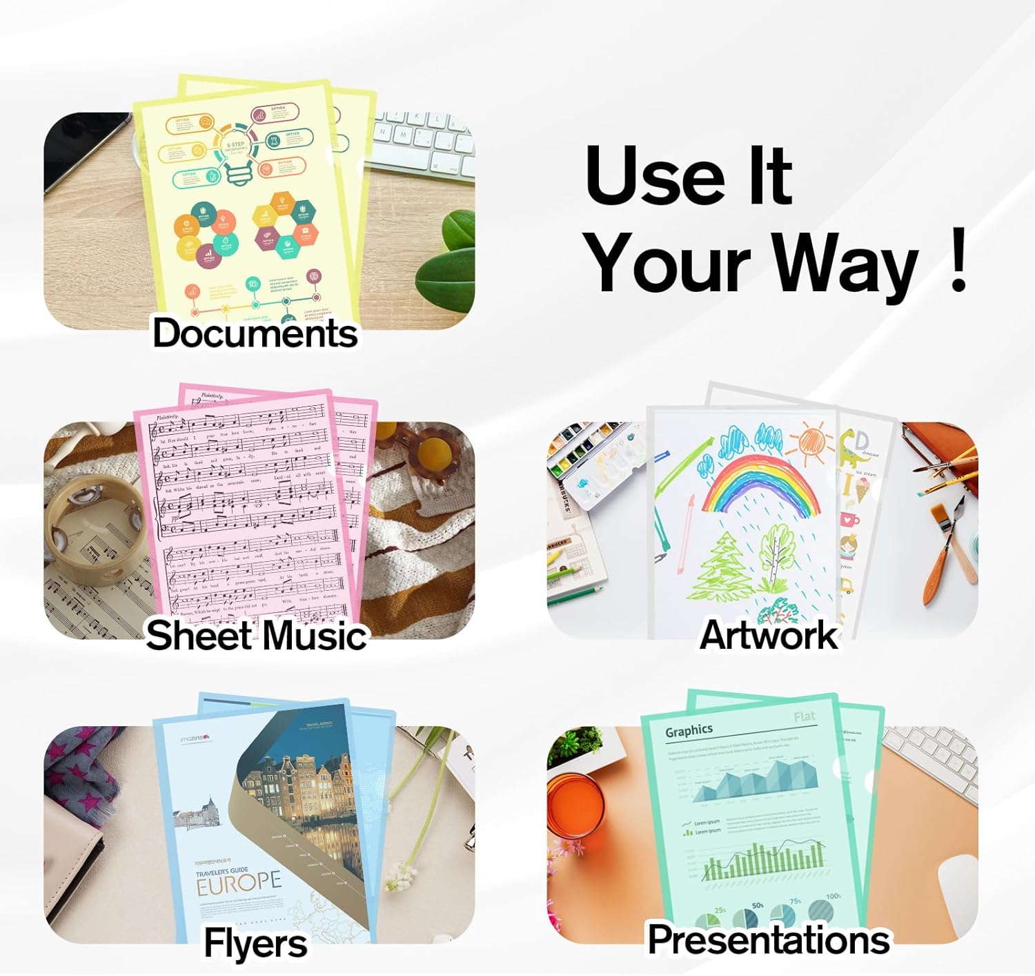 Heavy Duty Paper Protectors: Made from high-quality material, these thickened document sleeves are tear-resistant, anti-wrinkle, and moisture-proof, ensuring long-lasting protection