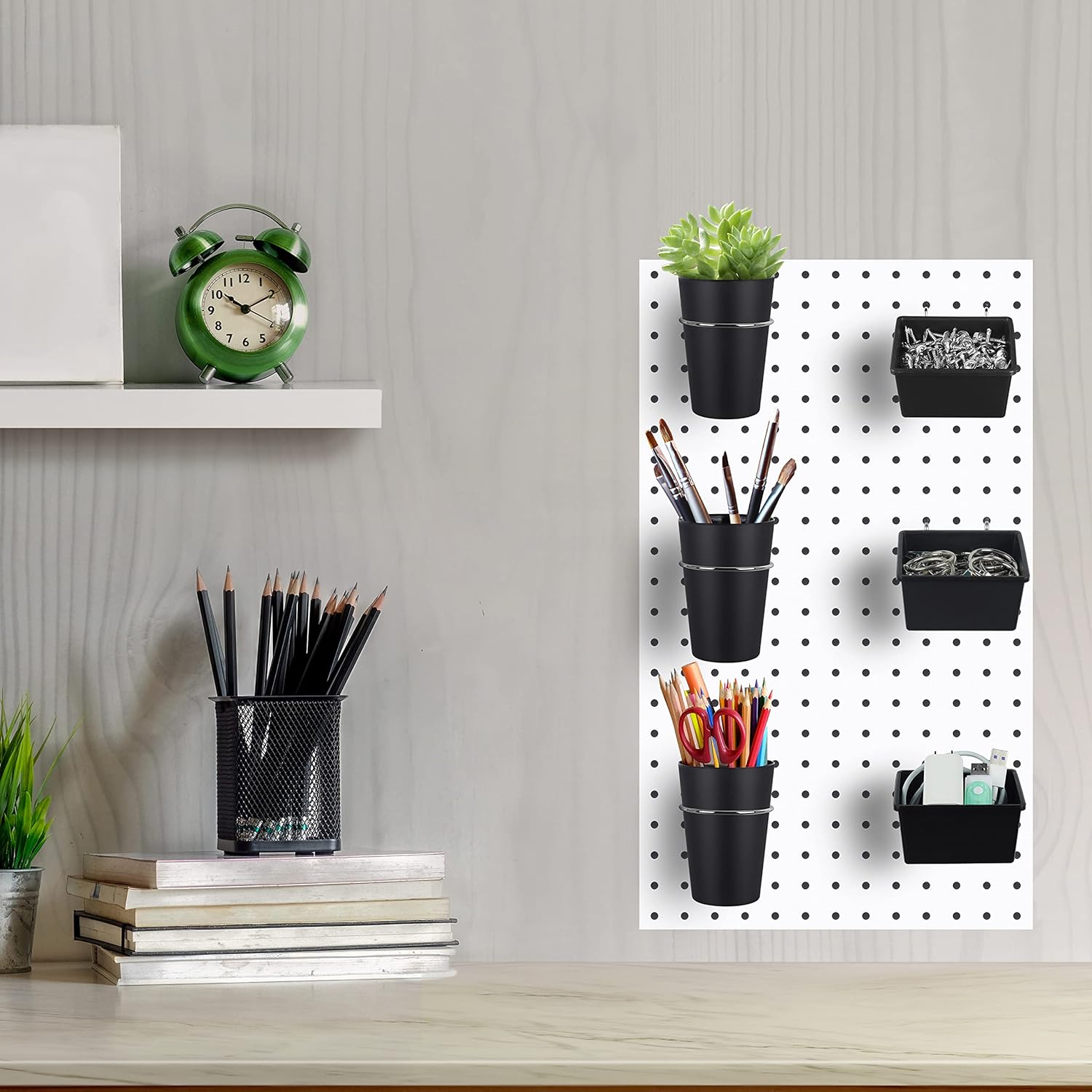 Wide Application: Pegboard cups and pegboard bins with hooks allow you to store both arts and crafts accessories, or some other small items, hardware, various tools and more, ideal for organizing your craft room, workbench, basement, garage, office or shop.