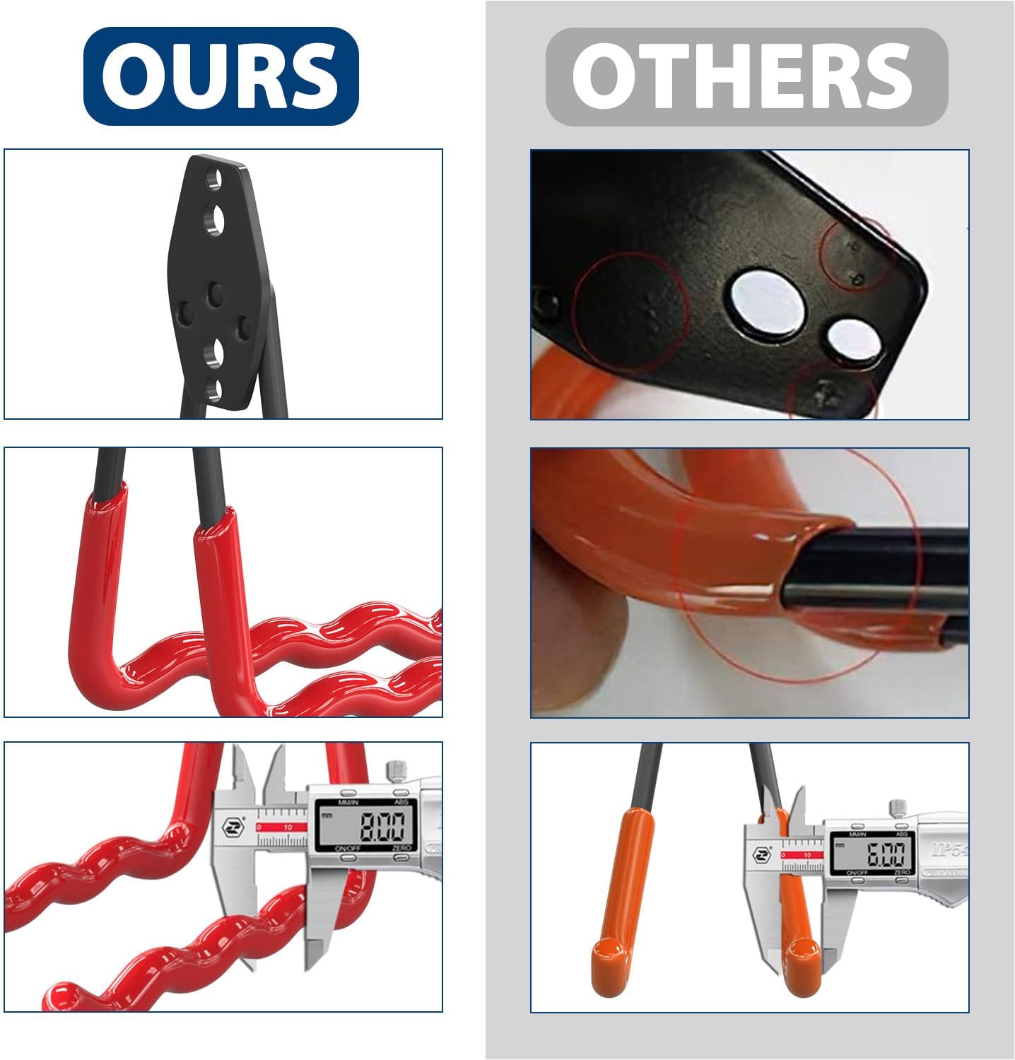 BEAR MORE WEIGHT:Our 3 Welding Spots Garage wall hooks are designed with extended length plate distributing weight evenly for superior holding capacity.By contrast with other 2 welding spots garage hooks, our heavy duty garage hooks reinforce the stability and improve the load bearing. Unlike garage hooks wall mount with short and ineffective thread screws, our garage hanging hooks come with stronger hardware that goes deeper into your wall for firm hold and grip.