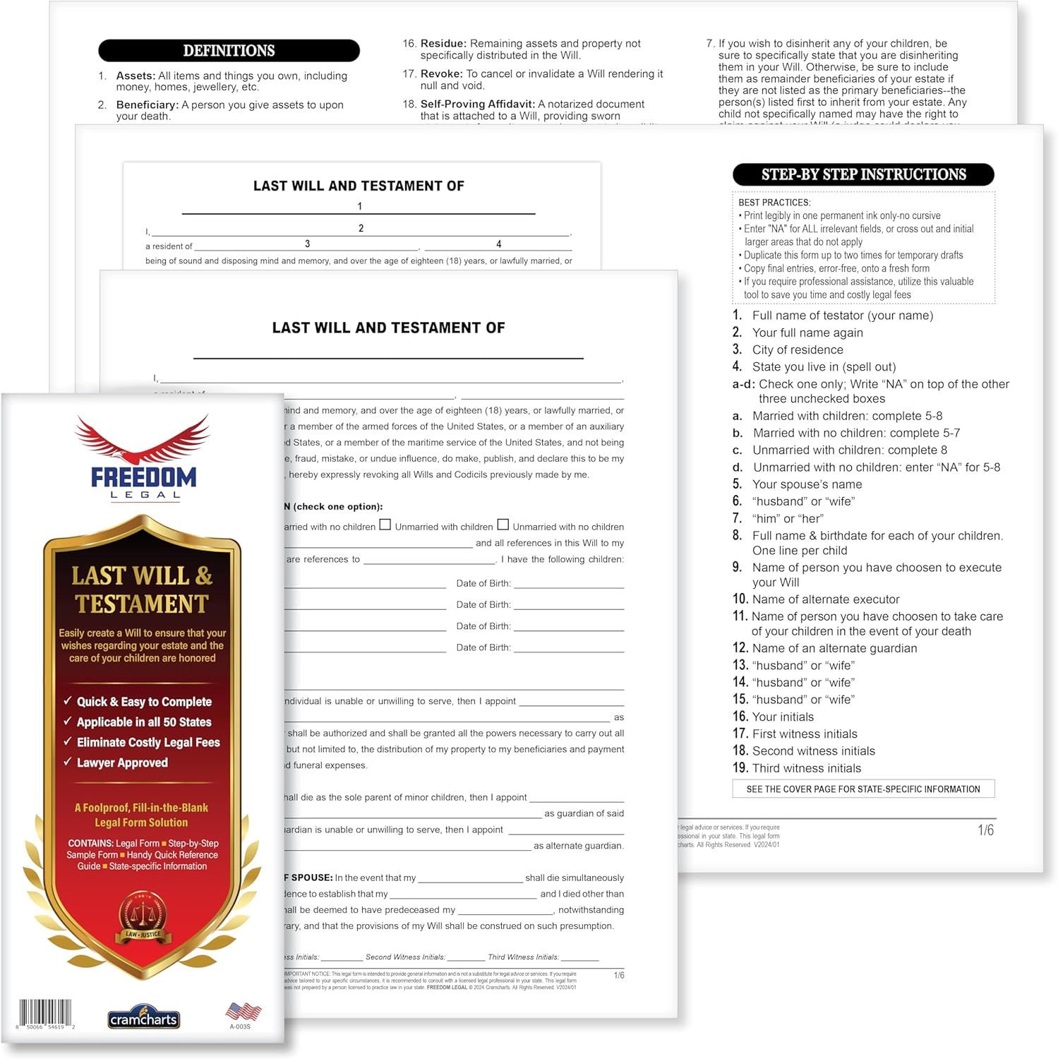 CramCharts Freedom Legal Last Will & Testament Legal FormsCramCharts Freedom Legal Last Will & Testament Legal Forms