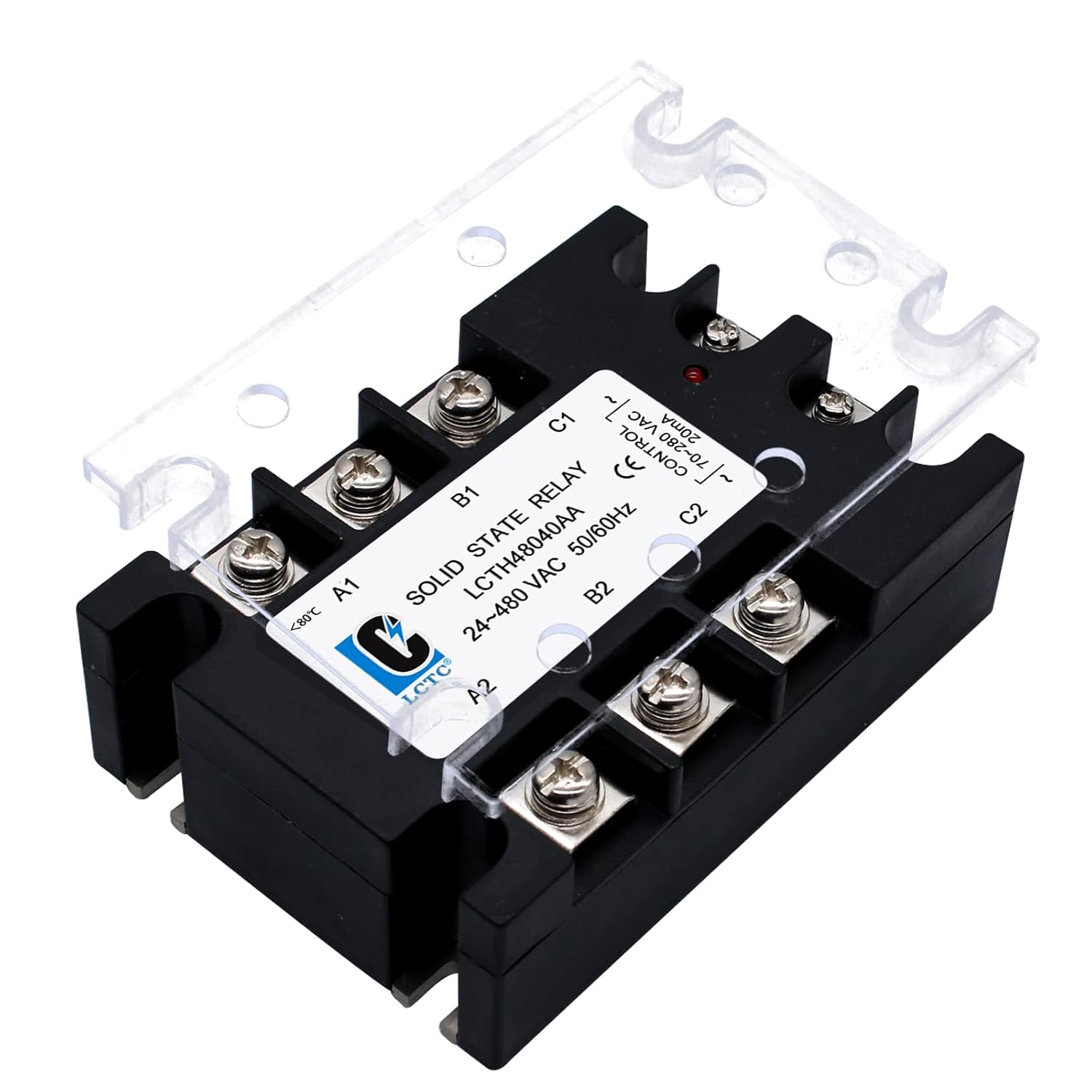 LCLCTC 3 Phase Solid State Relay SSR-40AA AC to AC (Input 70-280VAC to Output 24-480VAC) 3 Phase 30 Amp SSR(AC to AC 40A)