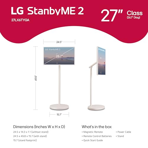 LG 27-Inch StanbyME 2 with Folio Cover, Portable Touch Screen, Dolby Vision, HDR10, Filmmaker Mode, Built-in Battery, Full Swivel Rotation (27LX6TYGA, 2025)