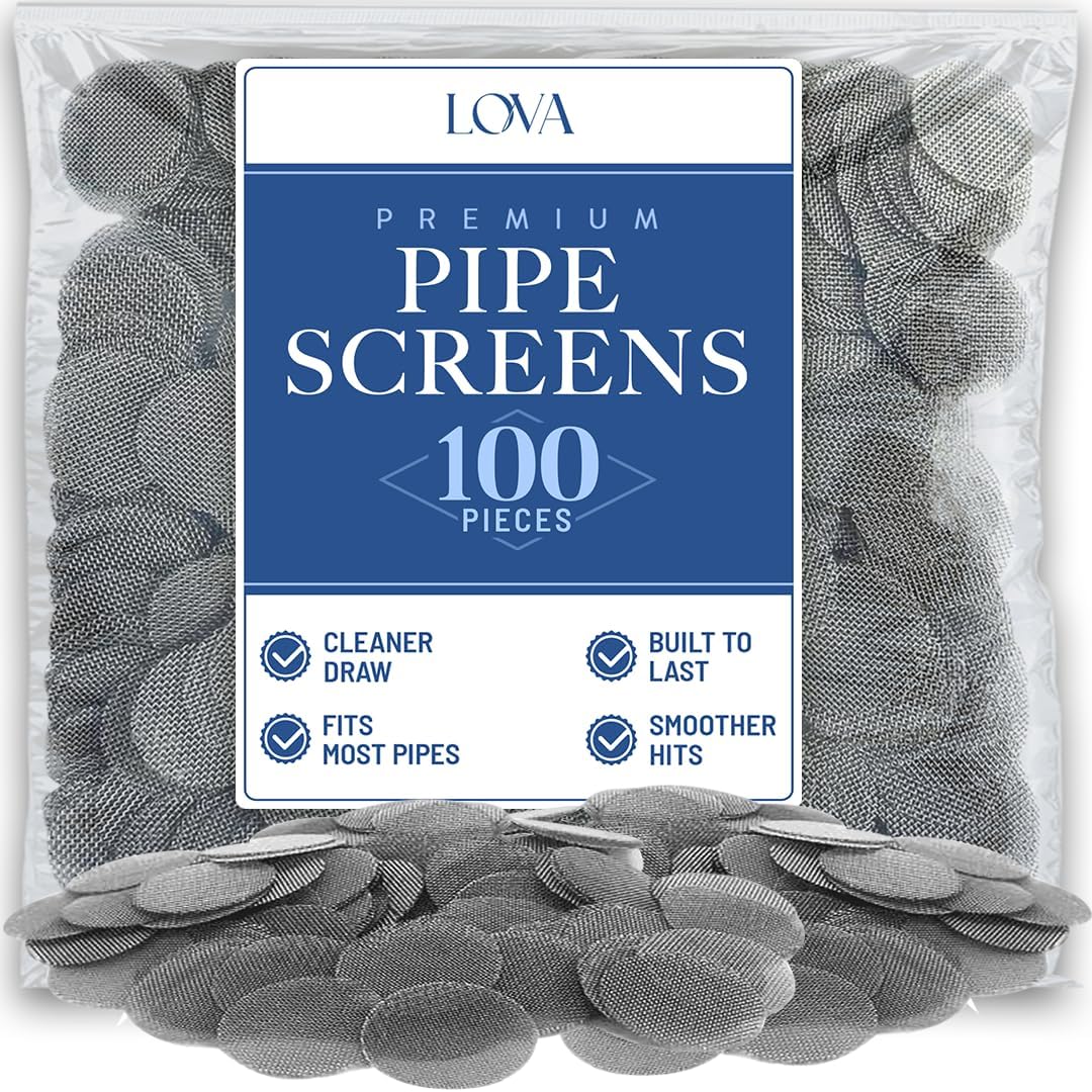 Lova Pipe Screens – 100 Pack Stainless Steel Screen Filters for Pipes – ¾ Inch (0.75″) Mesh Pipe Filters – Durable, Heat-Resistant, Easy to Clean – Smoking Accessories