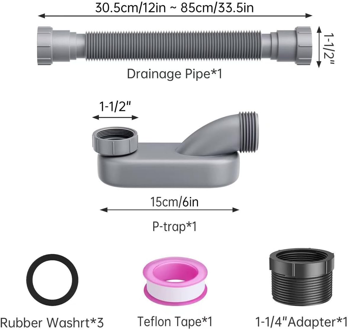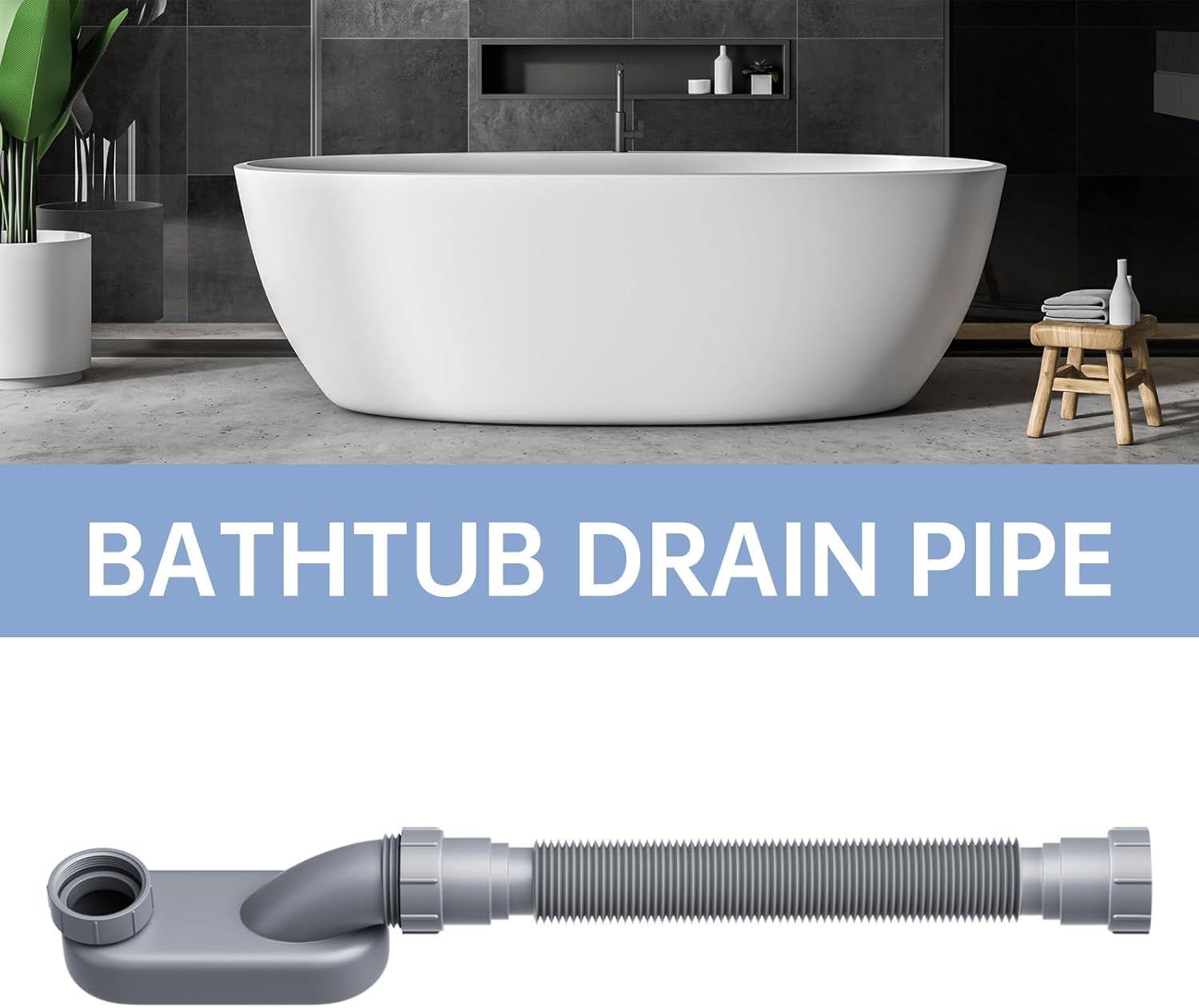 **Flexible Installation**: Solve space constraints or replace damaged traps with our adjustable bath tub drain pipe, stretching from 12″ to 33.5″ for versatile use.