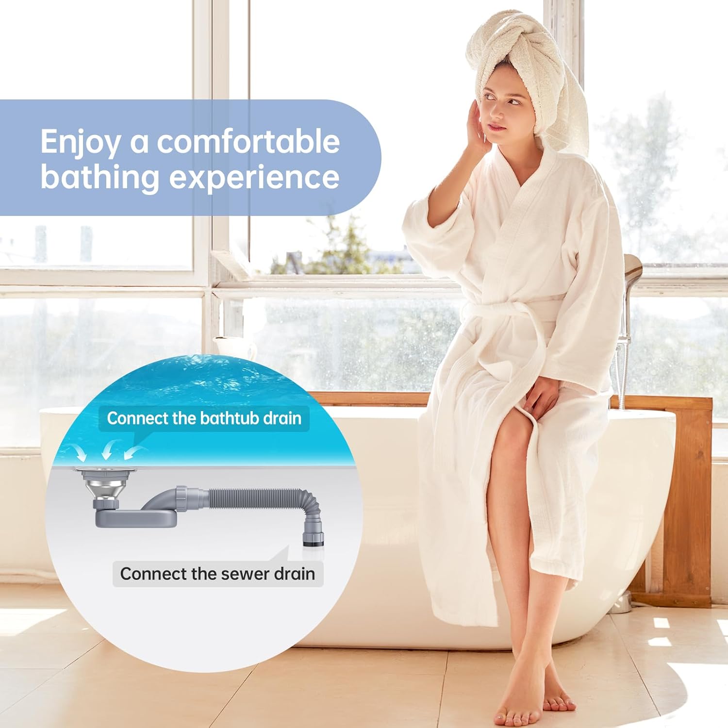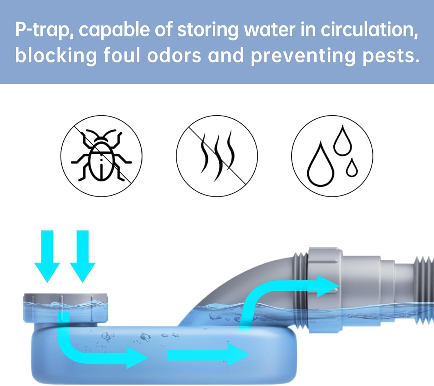 **Space-Saving Design**: Our low-profile p-trap is ideal for freestanding bathtubs and RVs, minimizing space occupied by fixed drains.