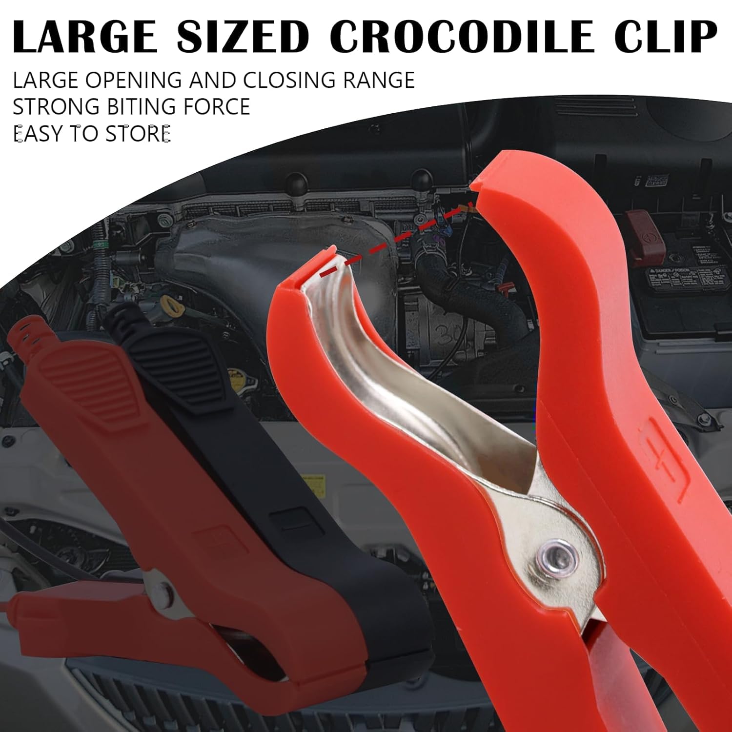 🔺Easy to Use:The red clip is connected to the positive terminal of the battery, andthe black clip is connected to the negative terminal of the battery;thereupon the blue digit shows the current battery voltage value, and turnon the front light; Connect inversely,The voltage value is not displayed,but the lamp is still on