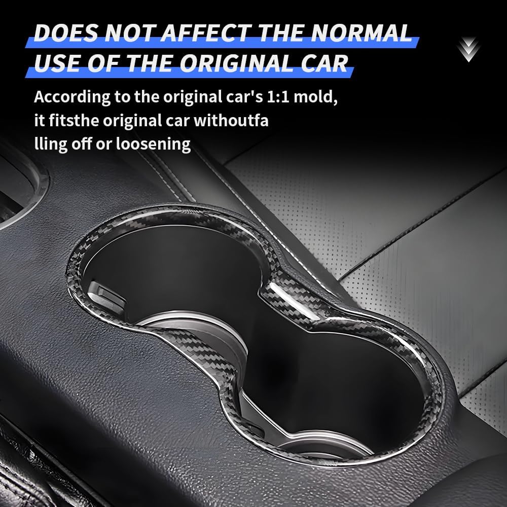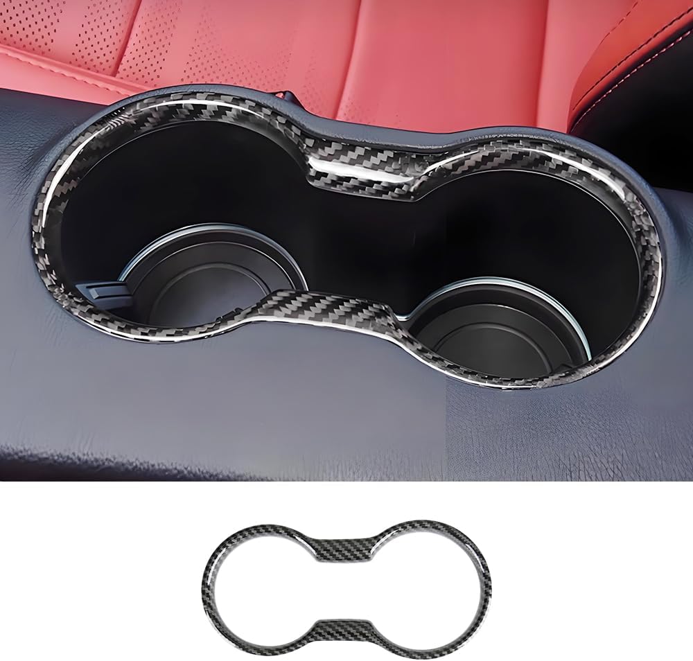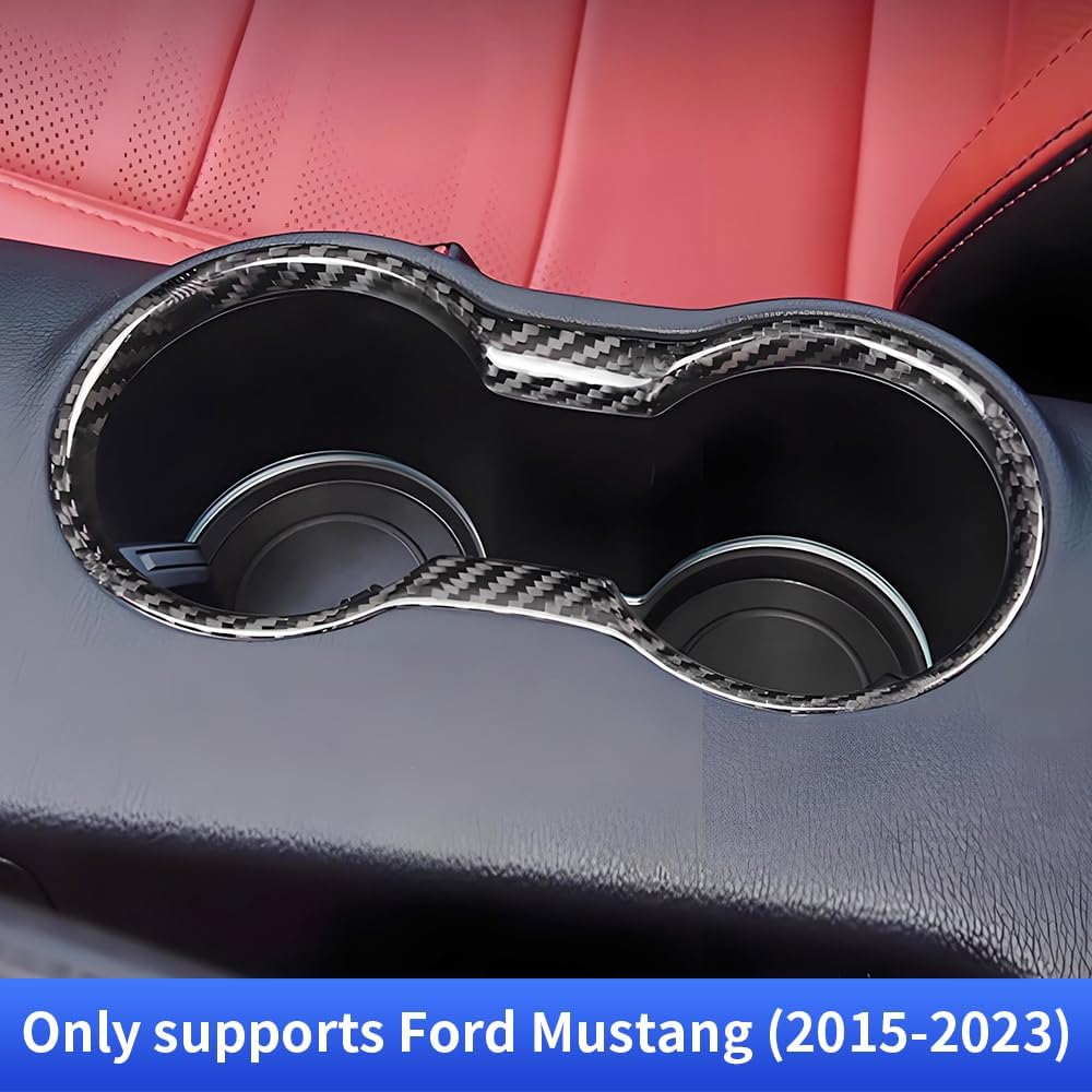 LUNQIN Car Center Console Armrest Front Cup Holder Trim Panel for Ford Mustang 2015 2016 2017 2018 2019 2020 2021 2022 2023 Auto Interior Accessories CupHolder Decor Cover Carbon Fiber Style Kit