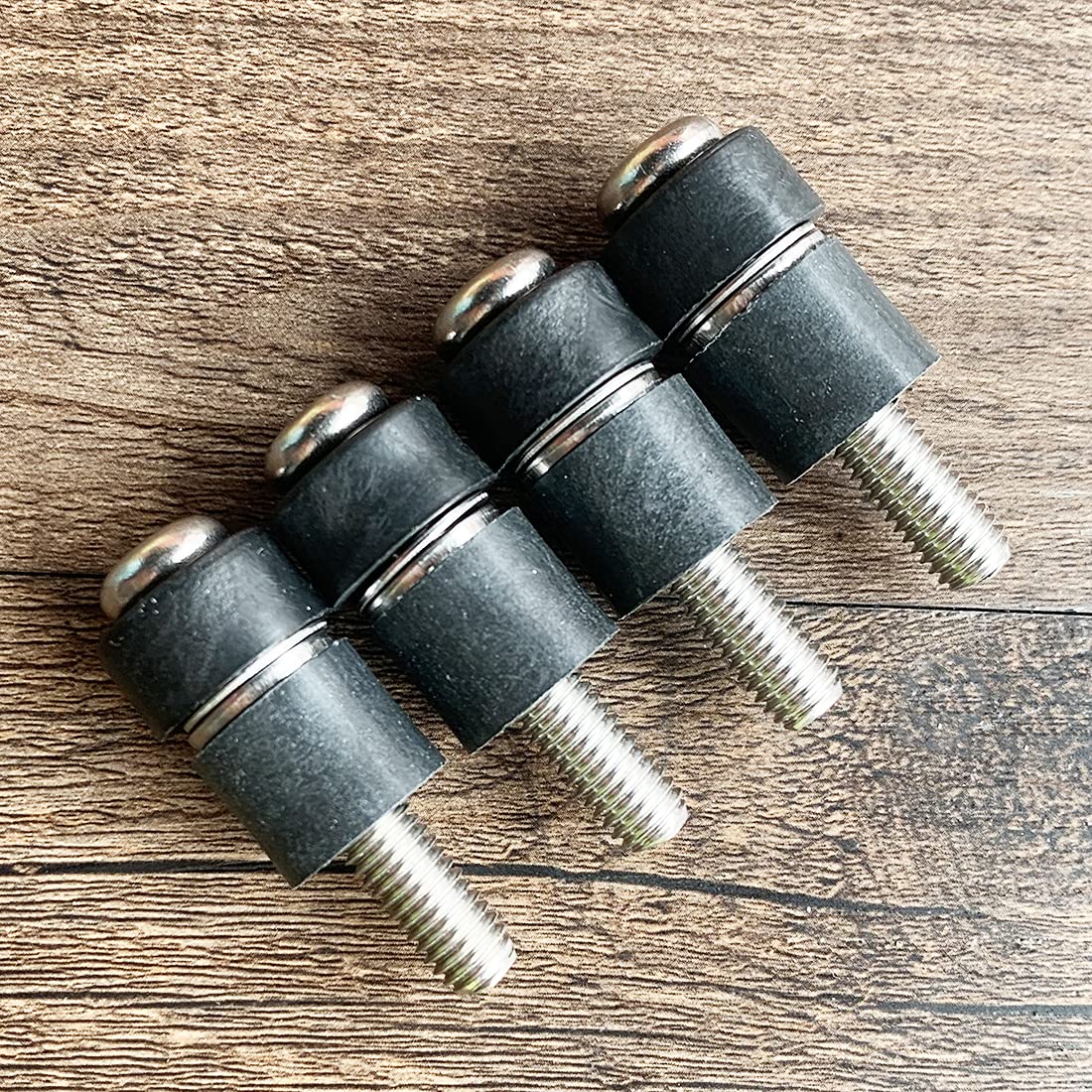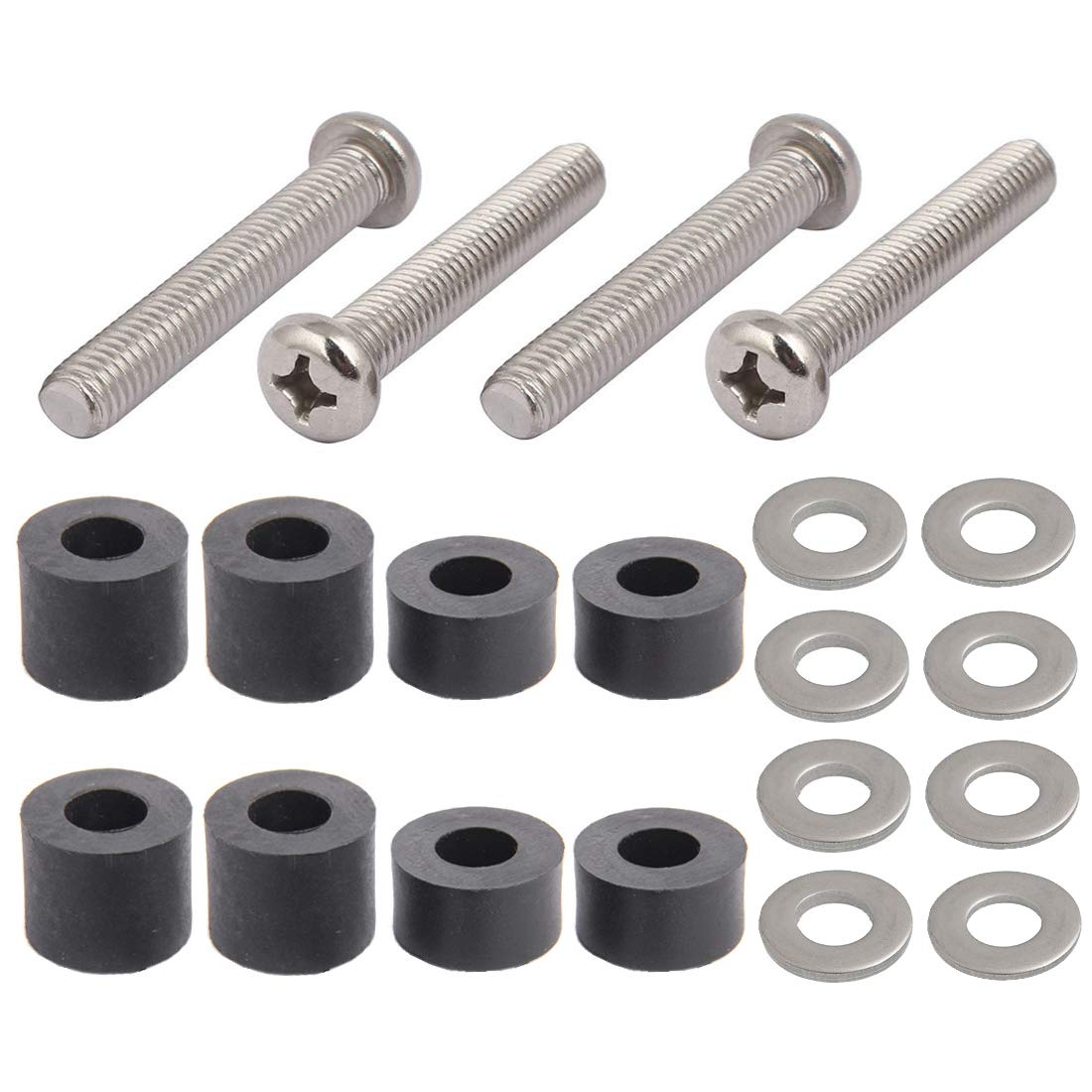 4x screws M8x45mm, 4x plastic spacers 15mm, 4x plastic spacers 10mm, 4x 2mm thick stainless steel flat washers, 4x 1mm thick stainless steel flat washers