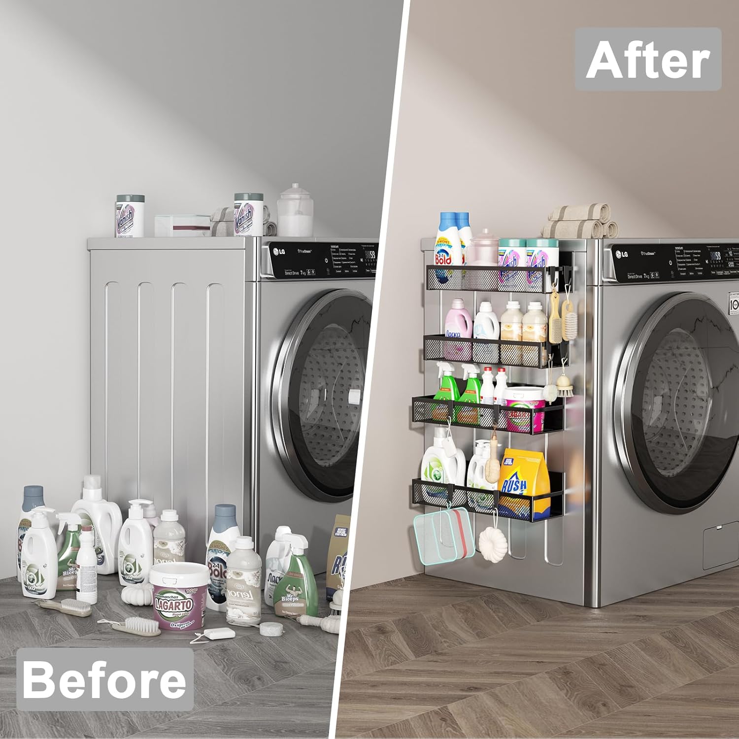 Multi-Use Magnetic Refrigerator Organizer: Can be used on all magnetic surfaces of your home, kitchen or laundry room, such as the side wall of your refrigerator to hold spices, oils, utensils, towels or other essentials. Our moveable refrigerator shelf can also be used on the side of an oven, microwave, coffee machine, washing machine, classroom, whiteboard or tools wall for storage.