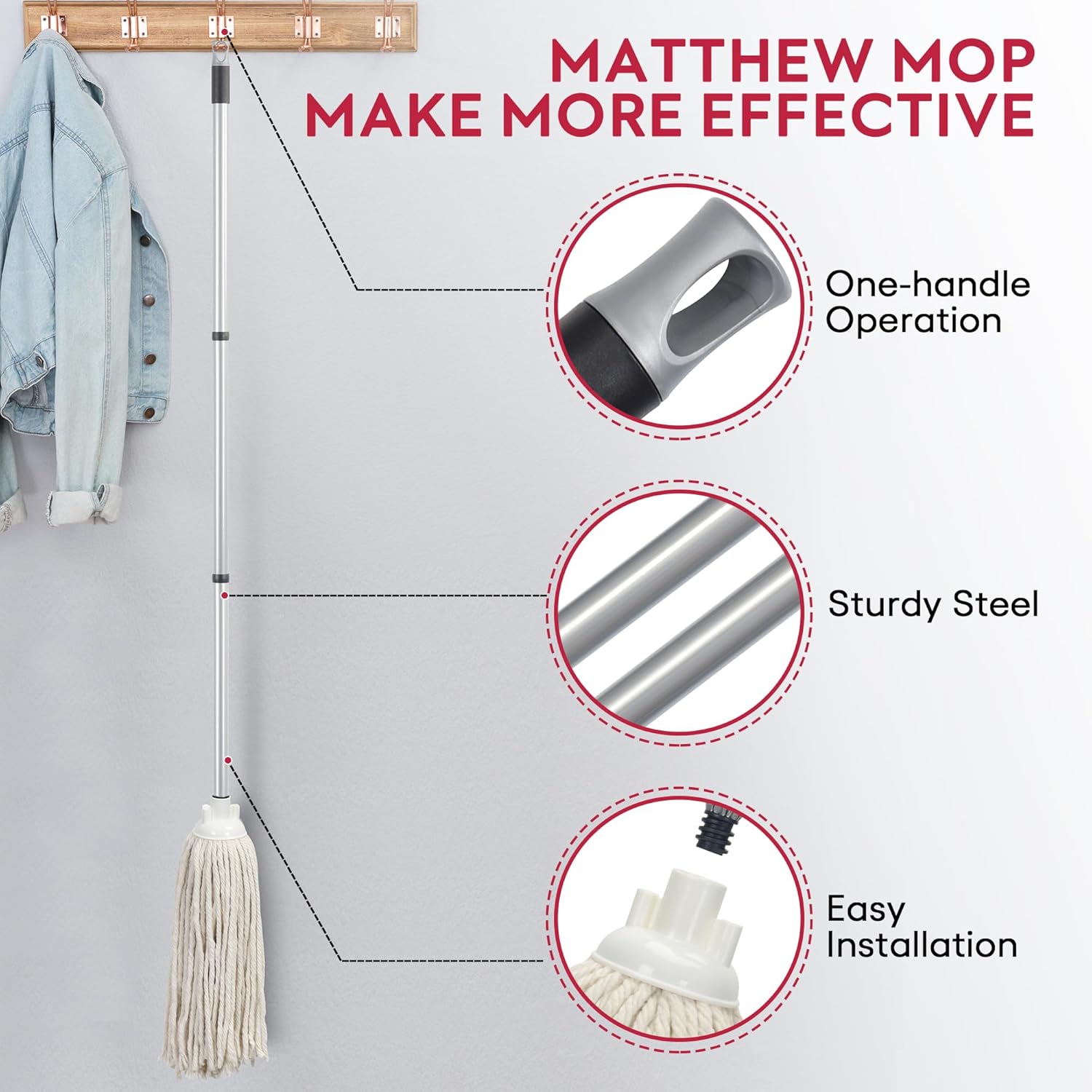 Long Lasting – The generous cotton yarn head boasts superb absorbent qualities, capable of soaking up to three times its weight in liquid. It comes with an environmentally friendly 4-Piece Handle, complete with a swivel hang hole for effortless storage