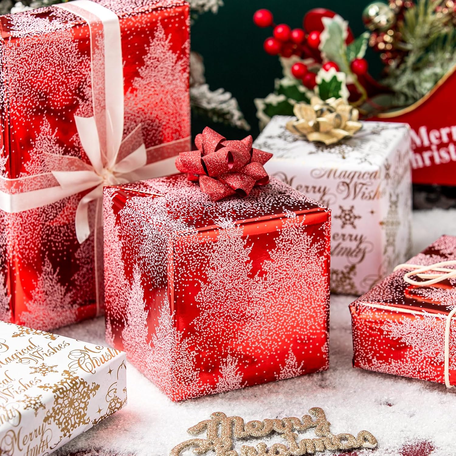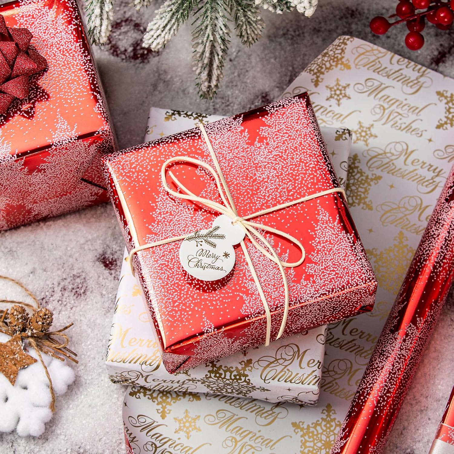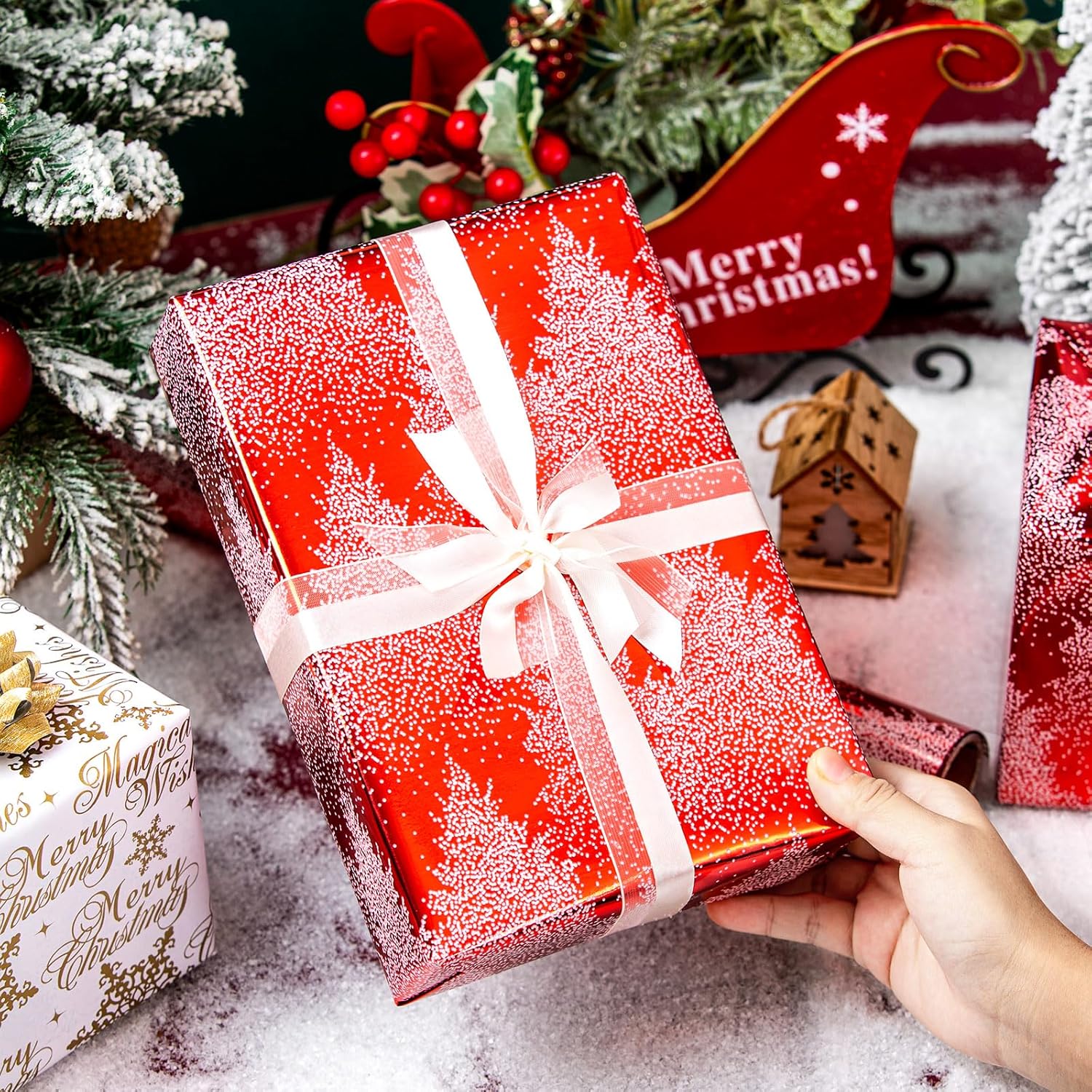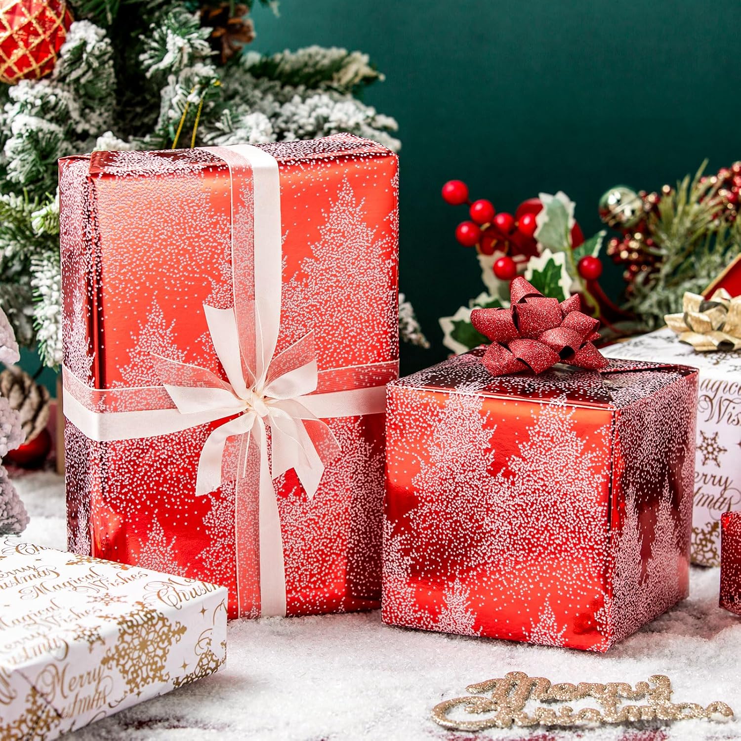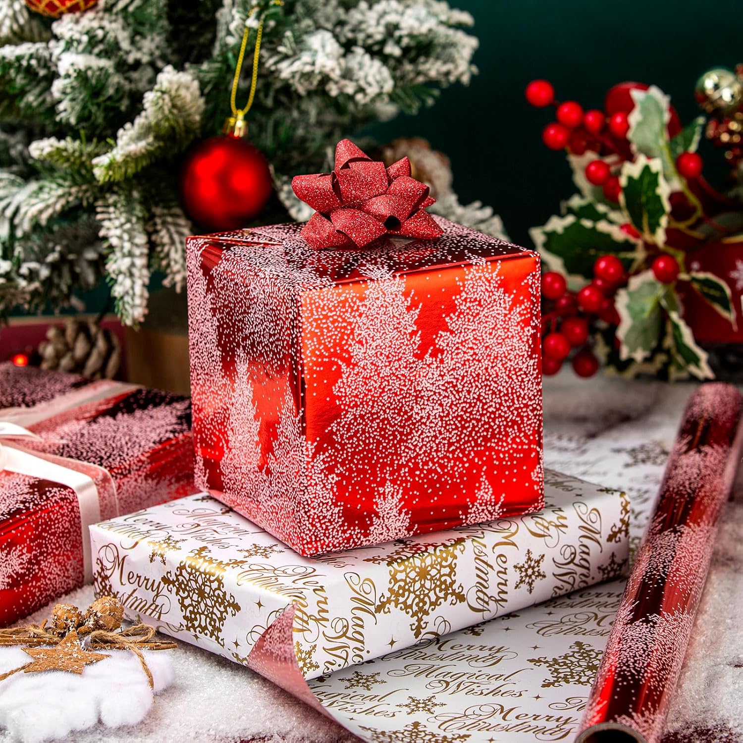 Premium Metallic Shine: Crafted with high-quality metallic foil, this red Christmas gift wrap catches the light and delivers a polished, luxurious finish. It’s not just wrapping paper—it’s part of the holiday experience. Durable enough for sharp corners, delicate enough to impress