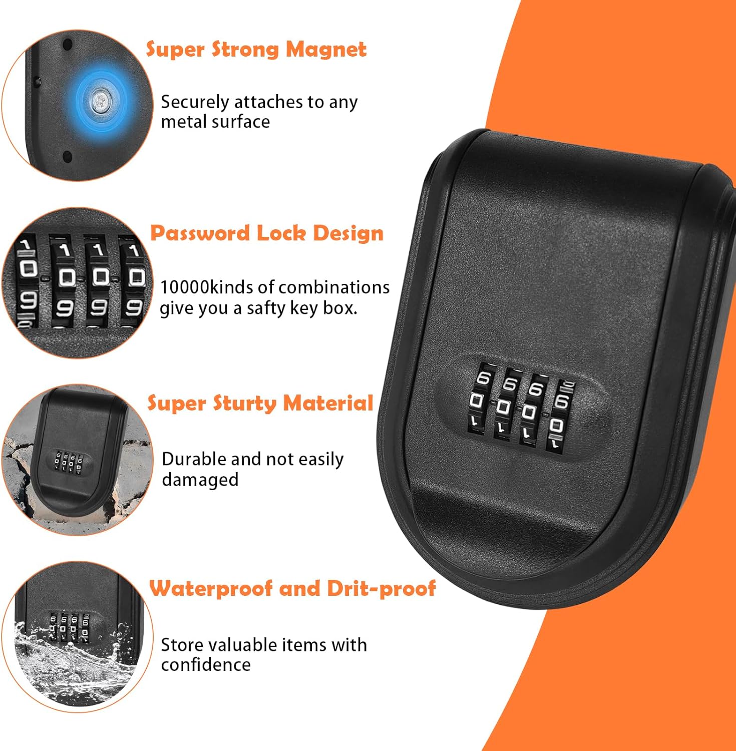 ✅Secure Combination Lock:This magnetic key lock box features an advanced combination lock design for added security, ensuring your keys are safely hidden. With password protection, there is no need to worry about strangers opening your car key lock box.