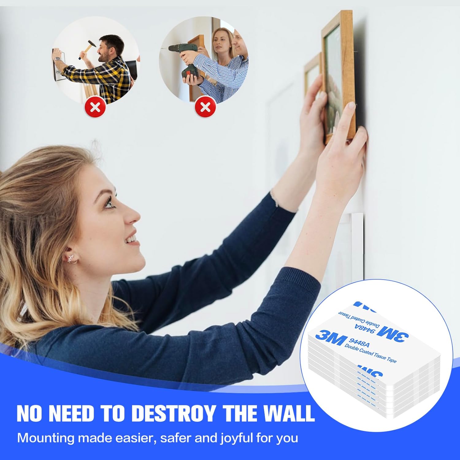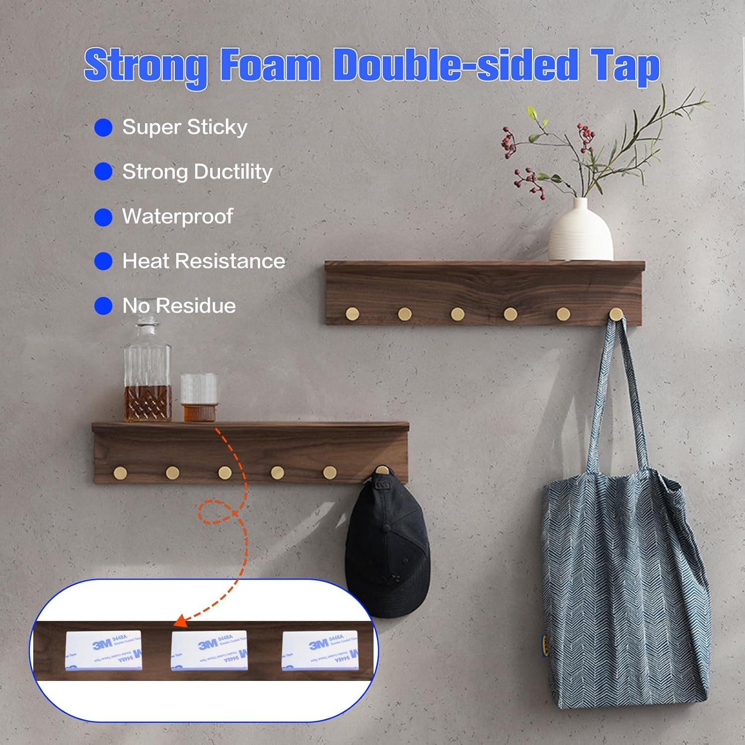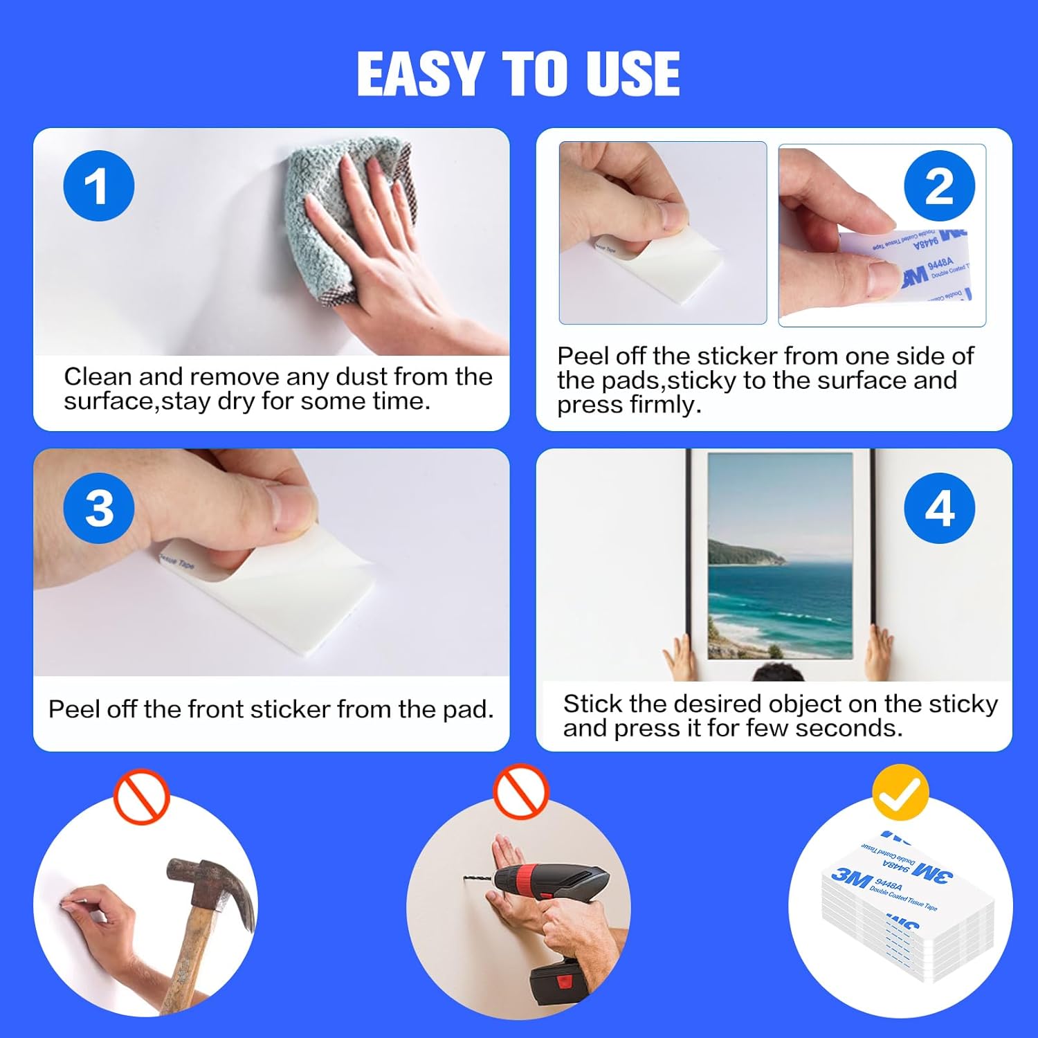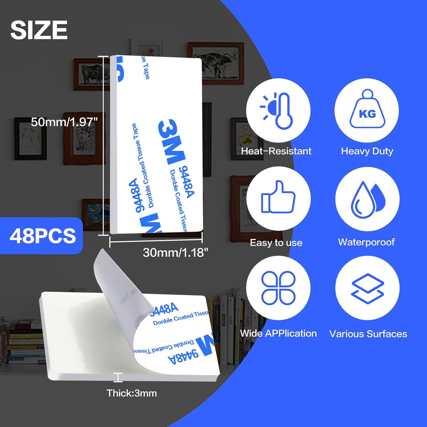 Multiple Dimensions: The double-sided wall tape includes enough quantities. The package comprises 48pcs bwhite rectangle adhesive pads. You can also cut them into any shapes you need:)