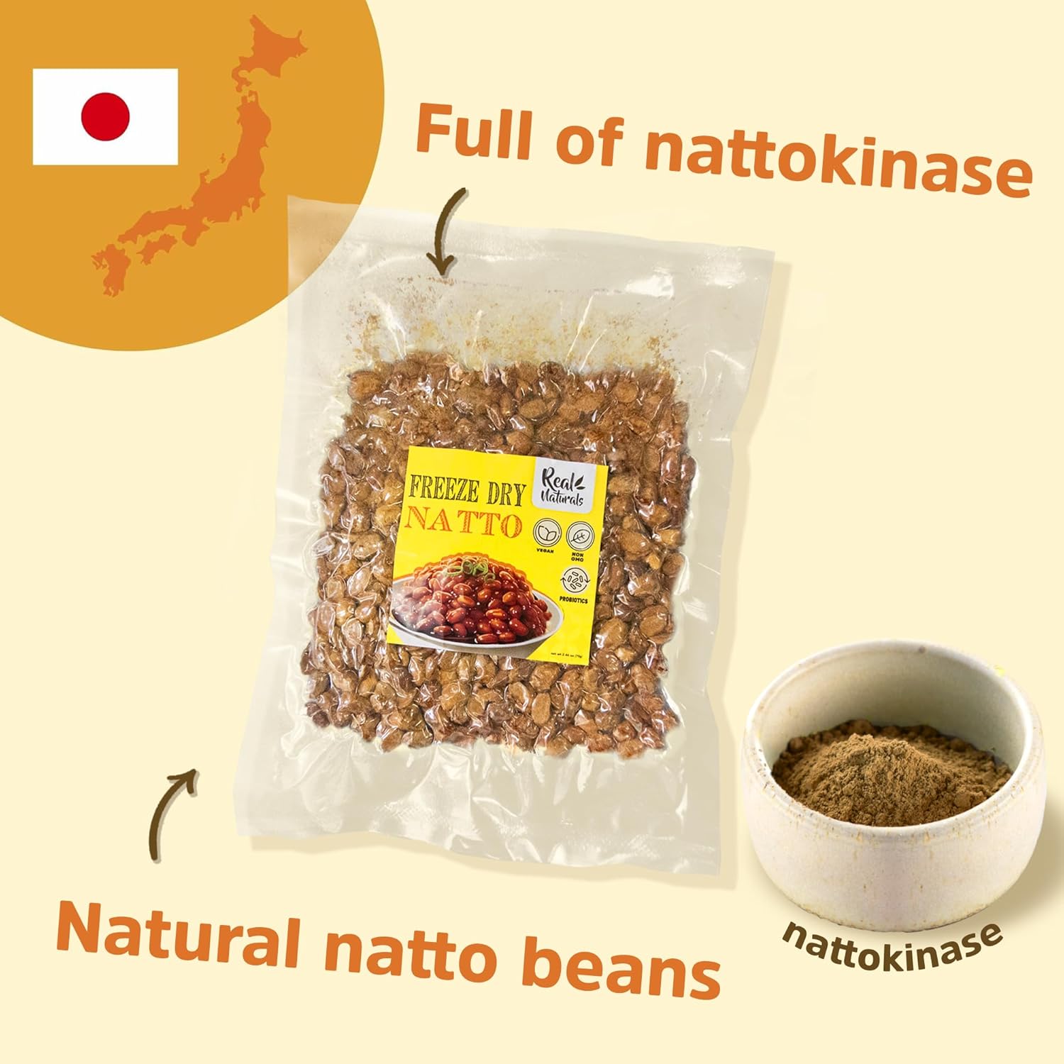 Japanese Natto freeze dried premium selected bean combined with a longer fermentation.
