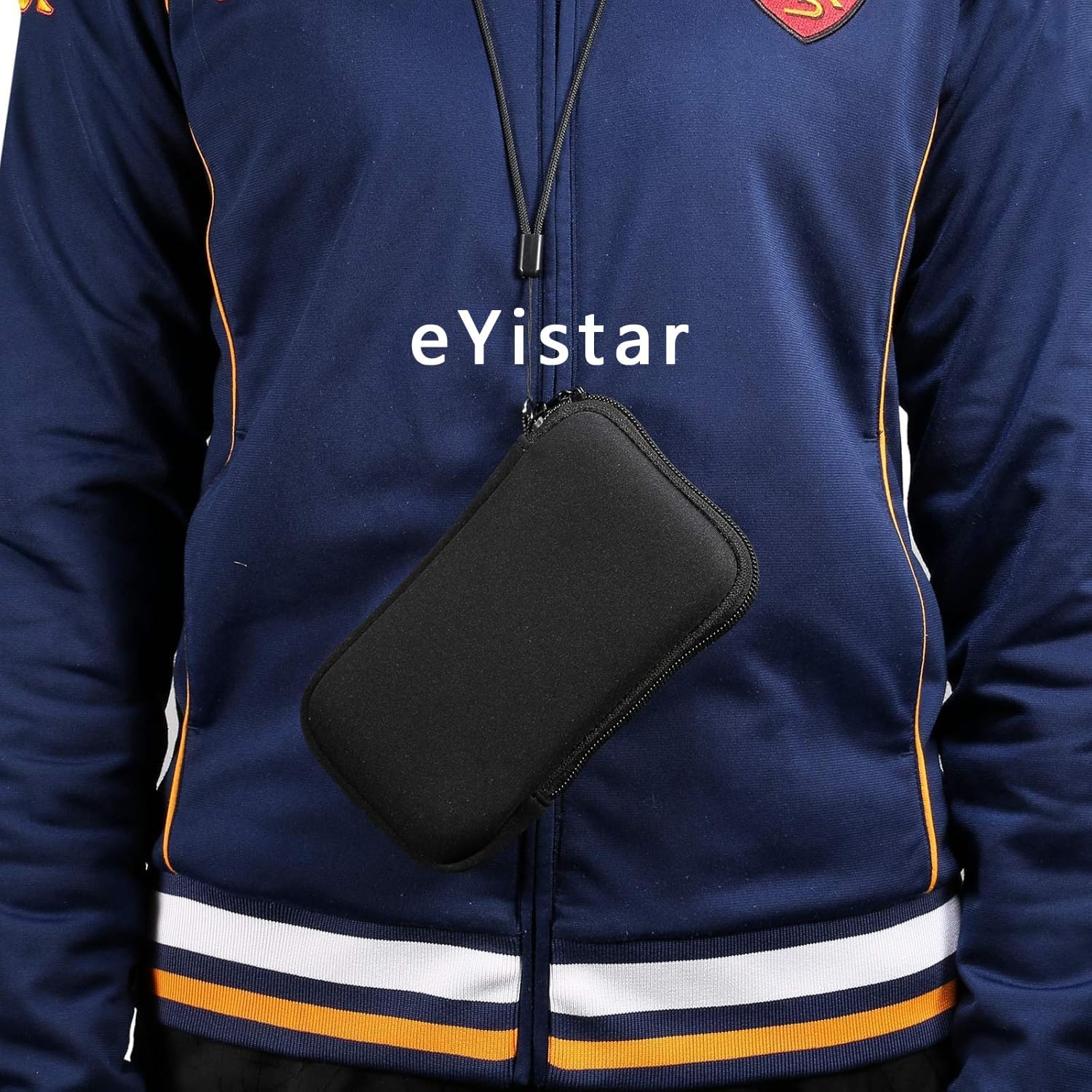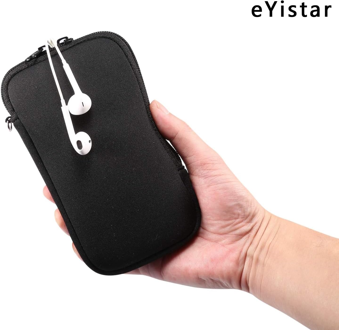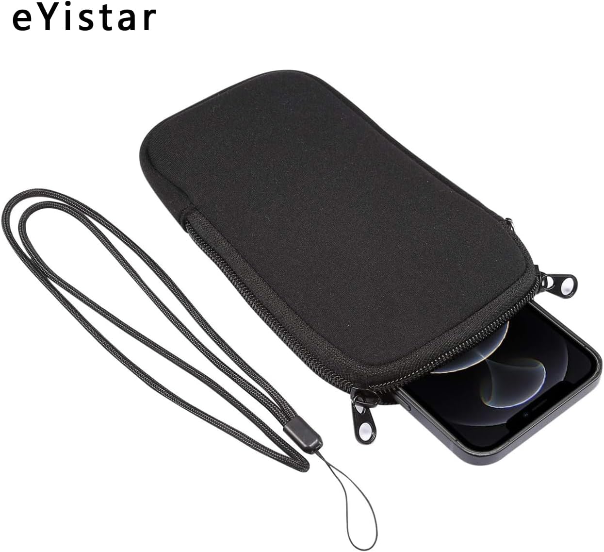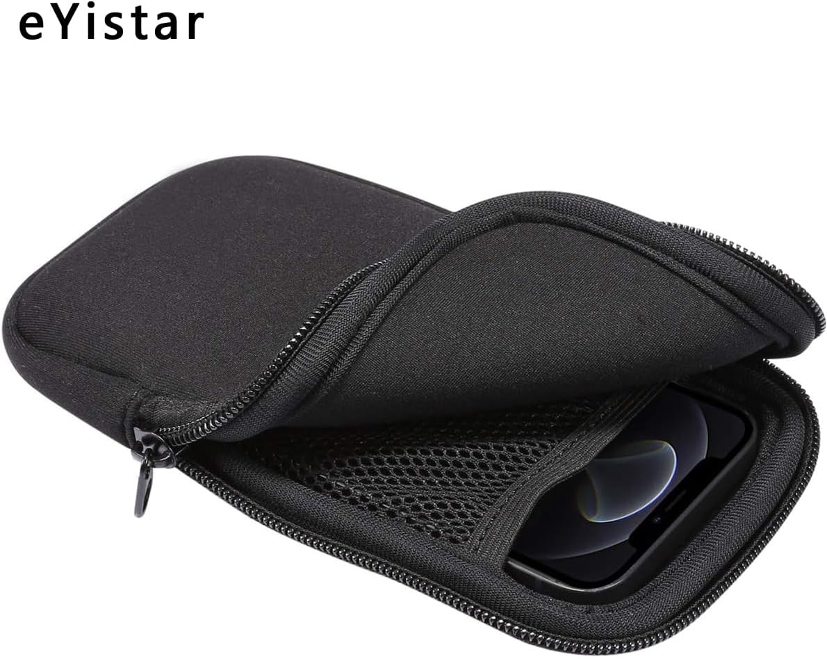 eYistar Neoprene Phone Pouch Size XXL – 7″ – Universal Cell Sleeve Mobile Bag with Zipper, Neck Strap – Black