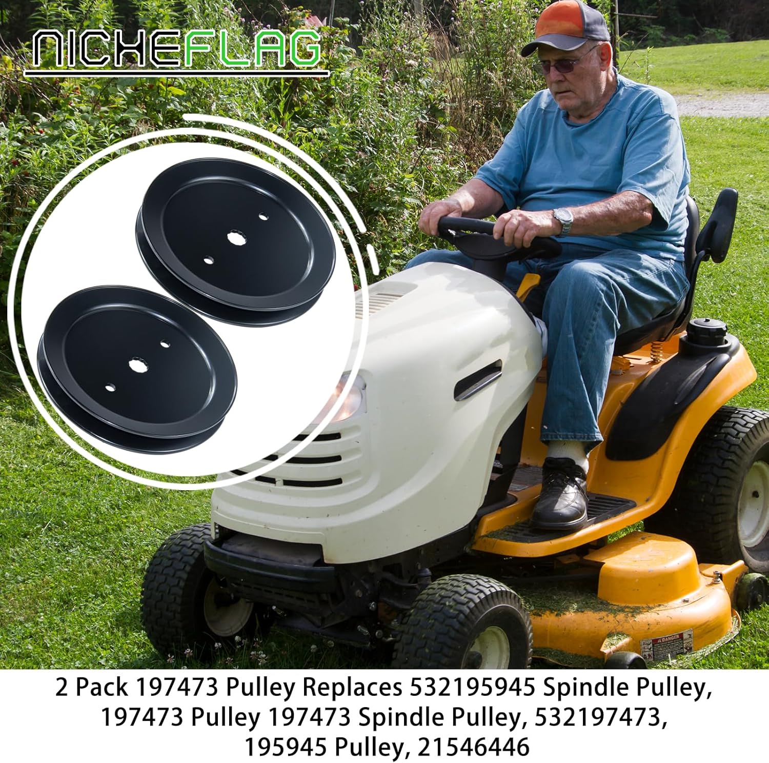 NICHEFLAG 2 Pack 197473 Pulley Replaces 532195945 Mandrel Pulley, Husqvarna 532197473 Pulley, 195945, 532199478, 709731, 705115, 21546446, Oregon 78-062 for Husqvarna YTH22V46, YS4500 Decks