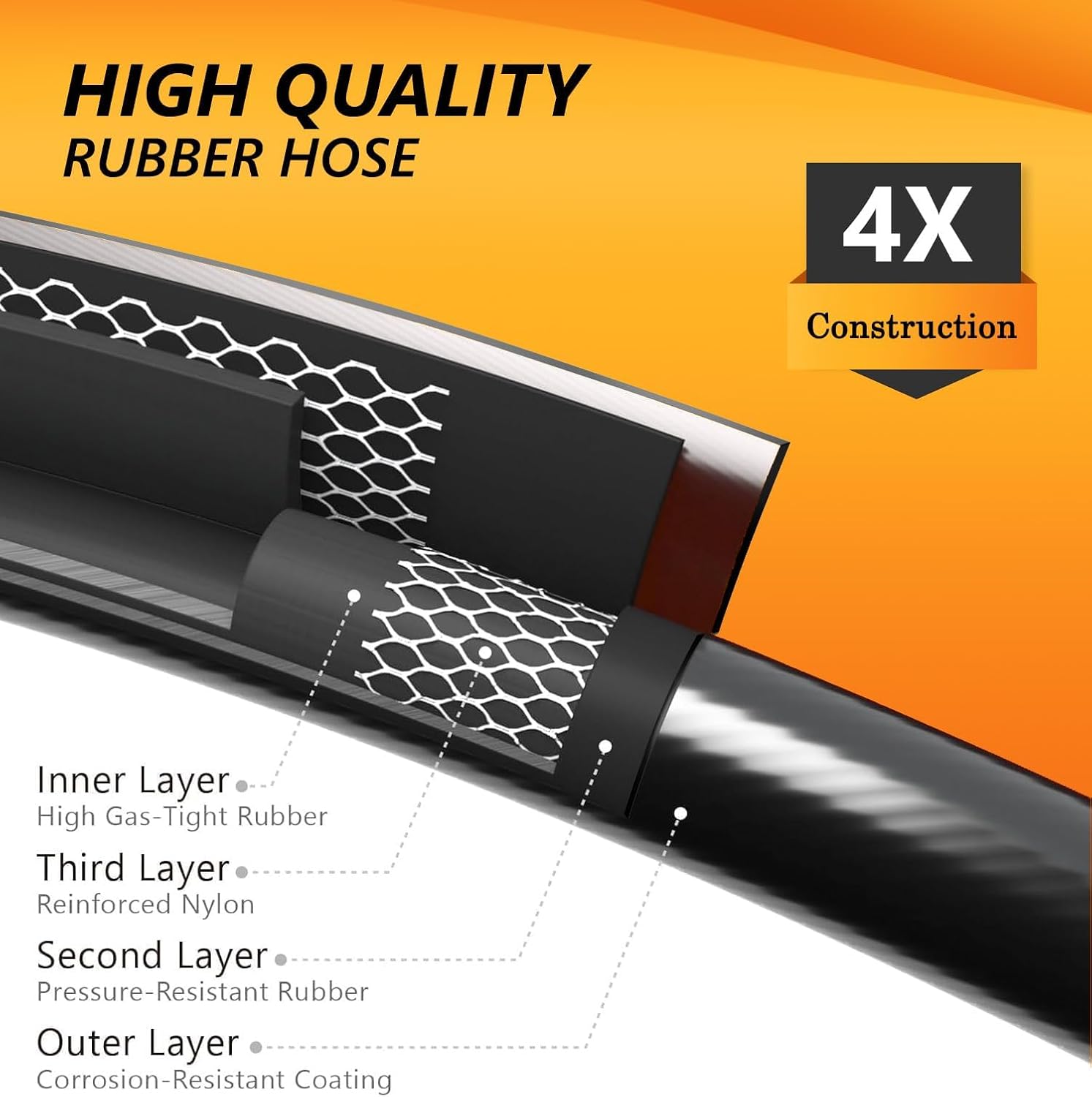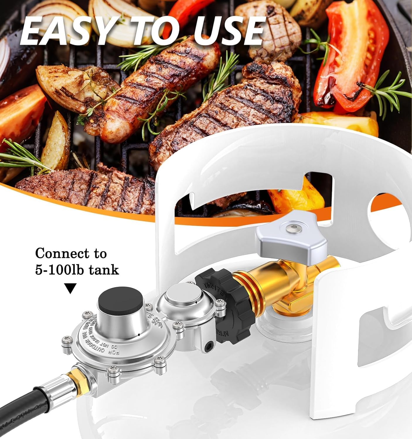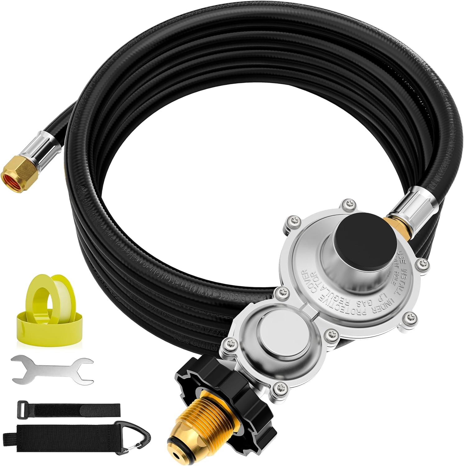 PREMIUM MATERIAL: 2 stage propane regulator constructed with 100% solid brass fittings and a high-grade rubber hose for maximum resistance to corrosion, heat, and UV. Each unit is leak-tested at the factory to ensure a secure and reliable connection
