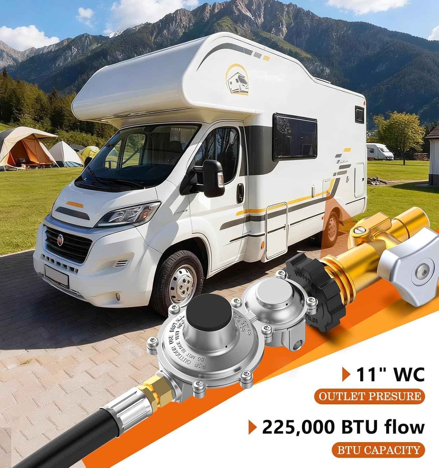 STABLE PRESSURE: Dual stage design ensures consistent 11″ WC low-pressure output. Provides smooth gas flow even when the propane tank level drops or under changing outdoor temperatures. Perfect for RV appliances and outdoor grills