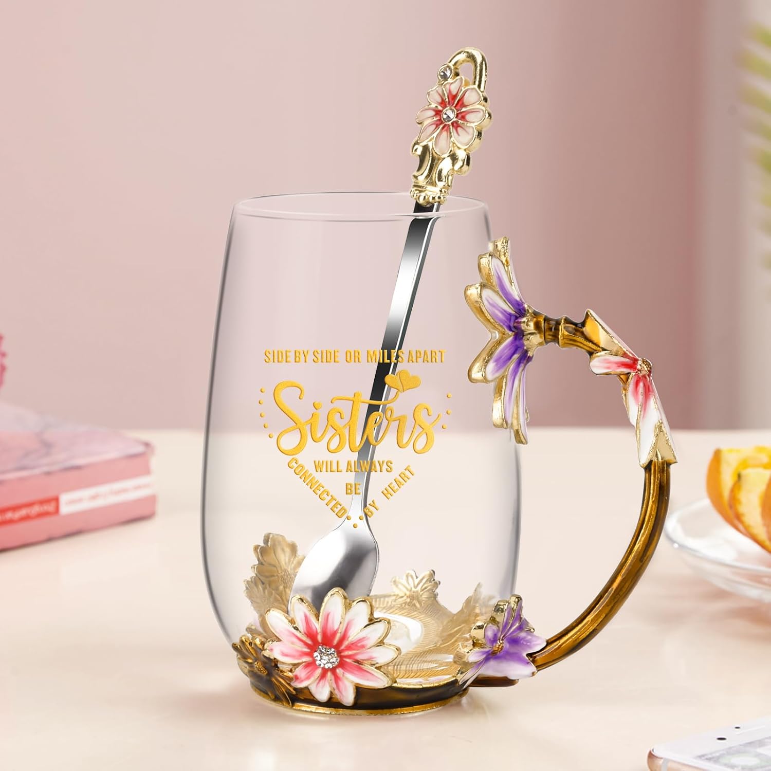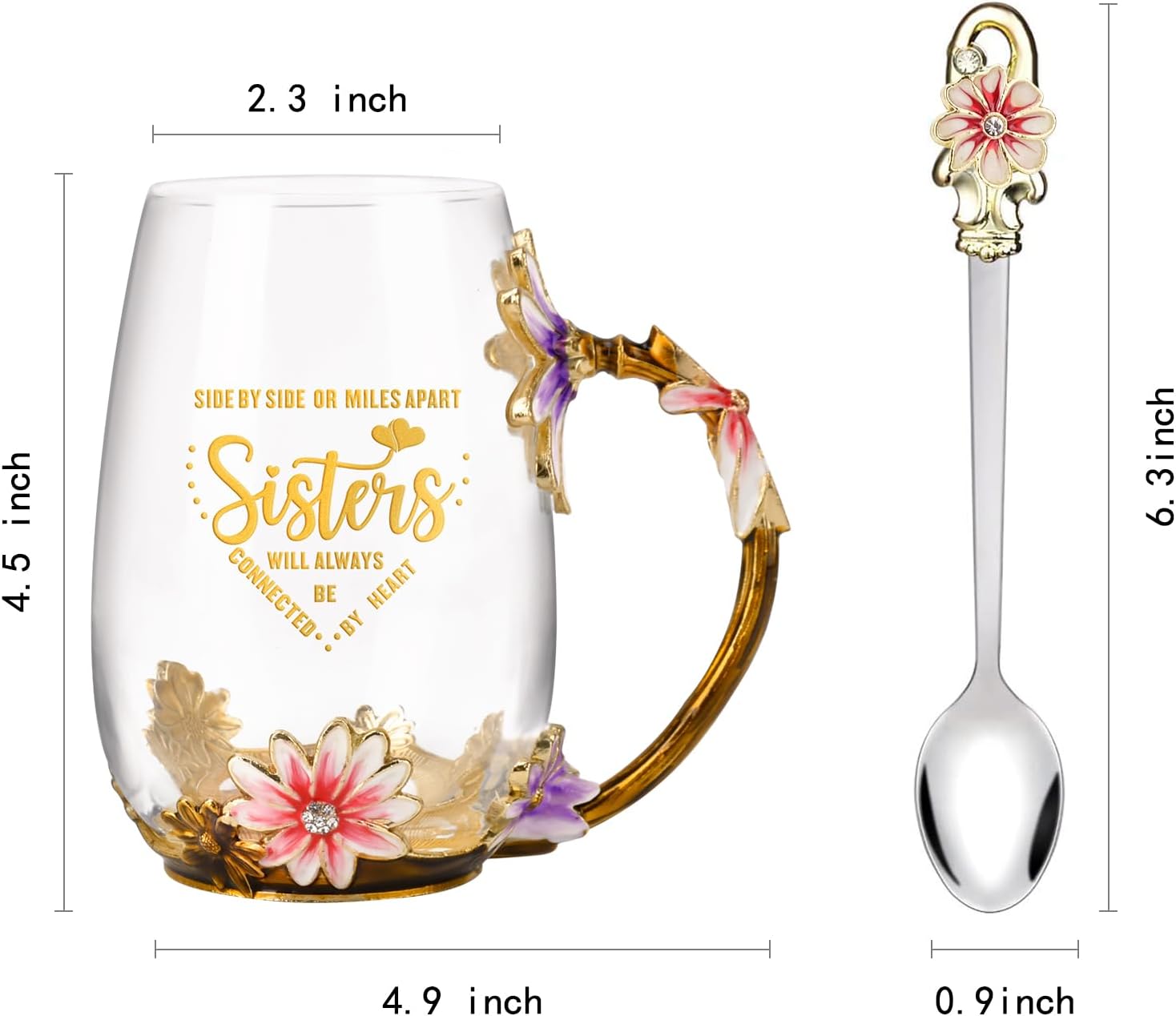The Perfect Gifts: Our glass mug look elegant and novel,and is the best sisters gifts for women.It is the perfect gift for your sister, little, big sister, sister in law on birthday, Christmas.