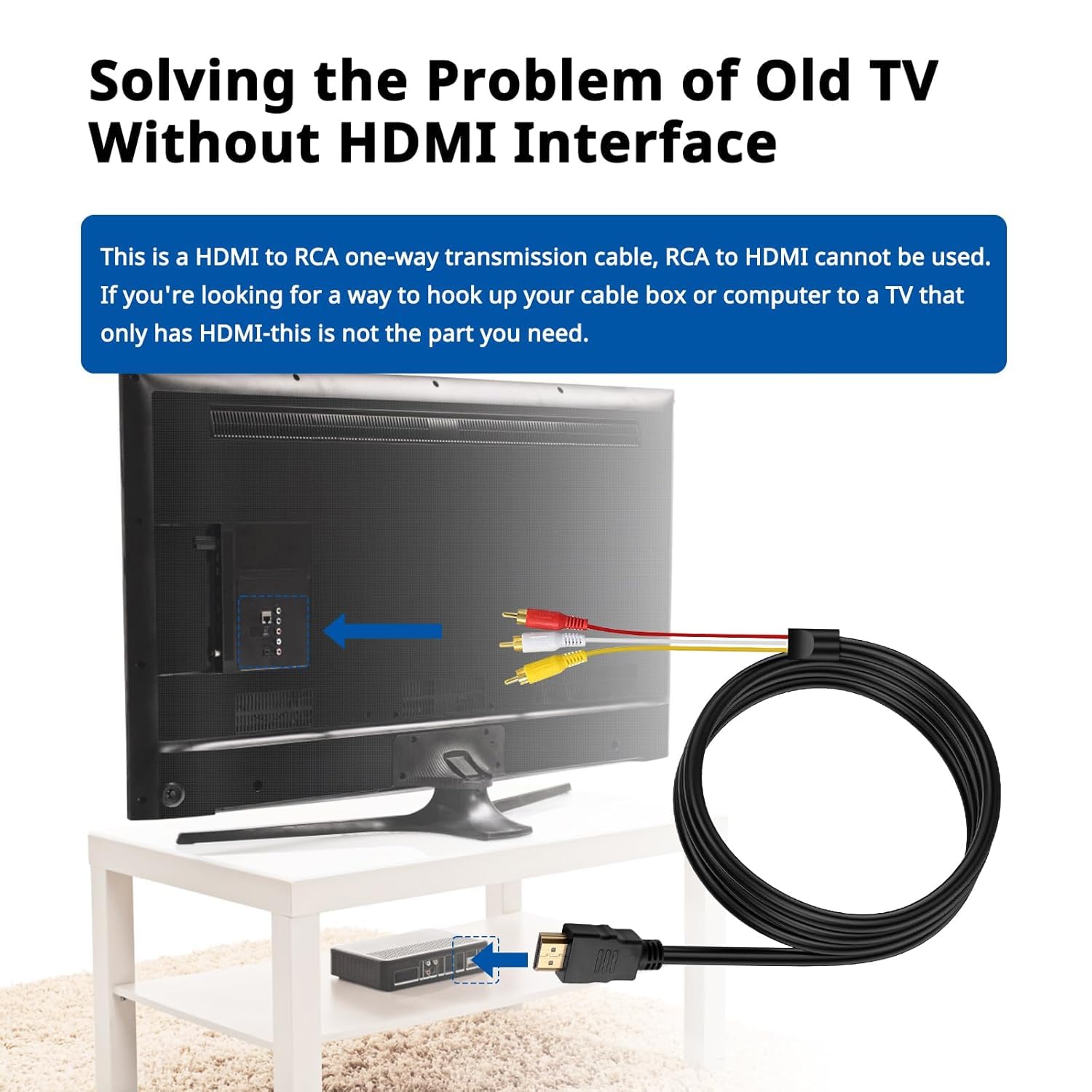 NOTE:Please read the product description carefully before purchasing, including the scope of application and precautions. This is a HDMI to RCA one-way transmission cable, RCA to HDMI cannot be used, which means the display device (TV or monitor) is the RCA end. (NO Signal Conversion Function)