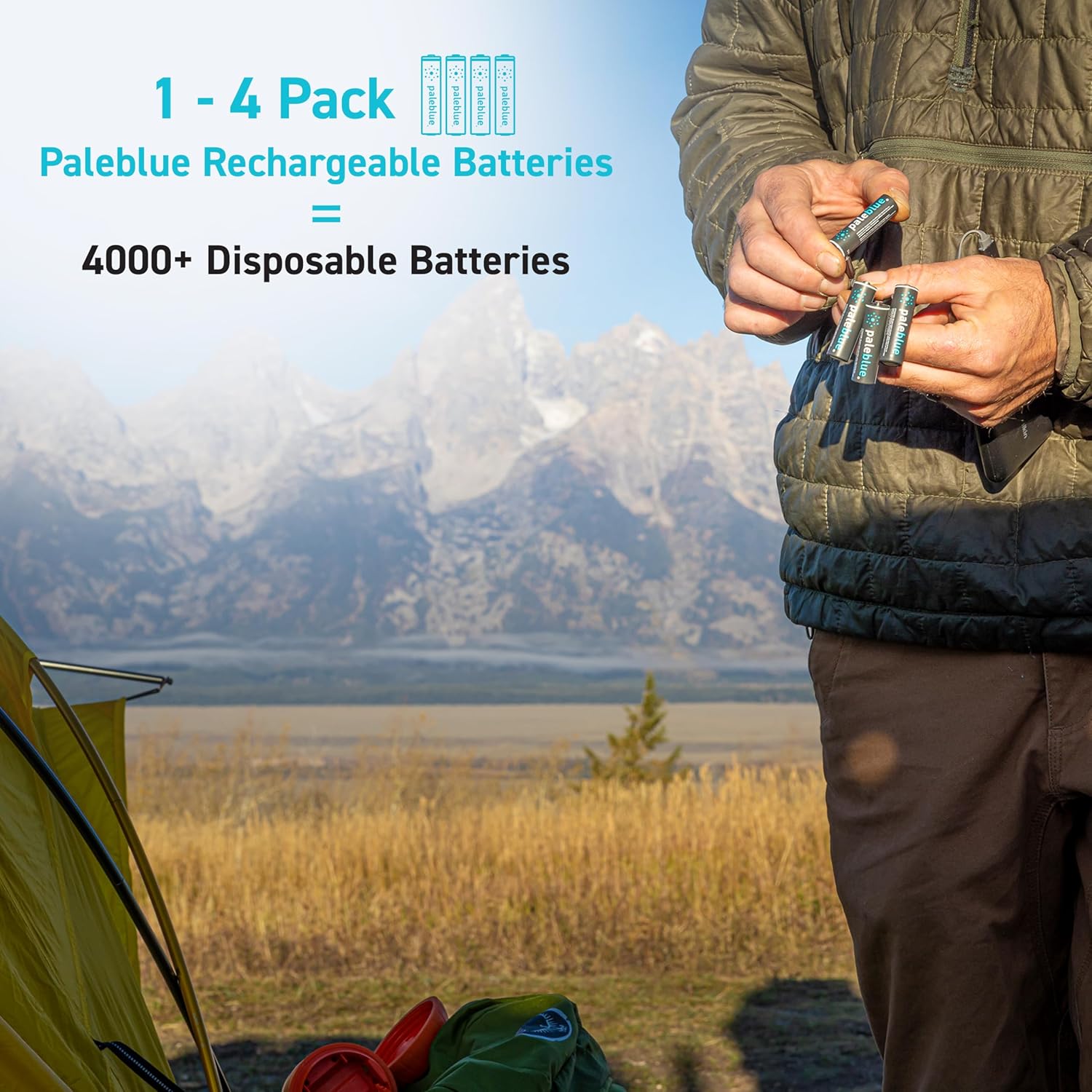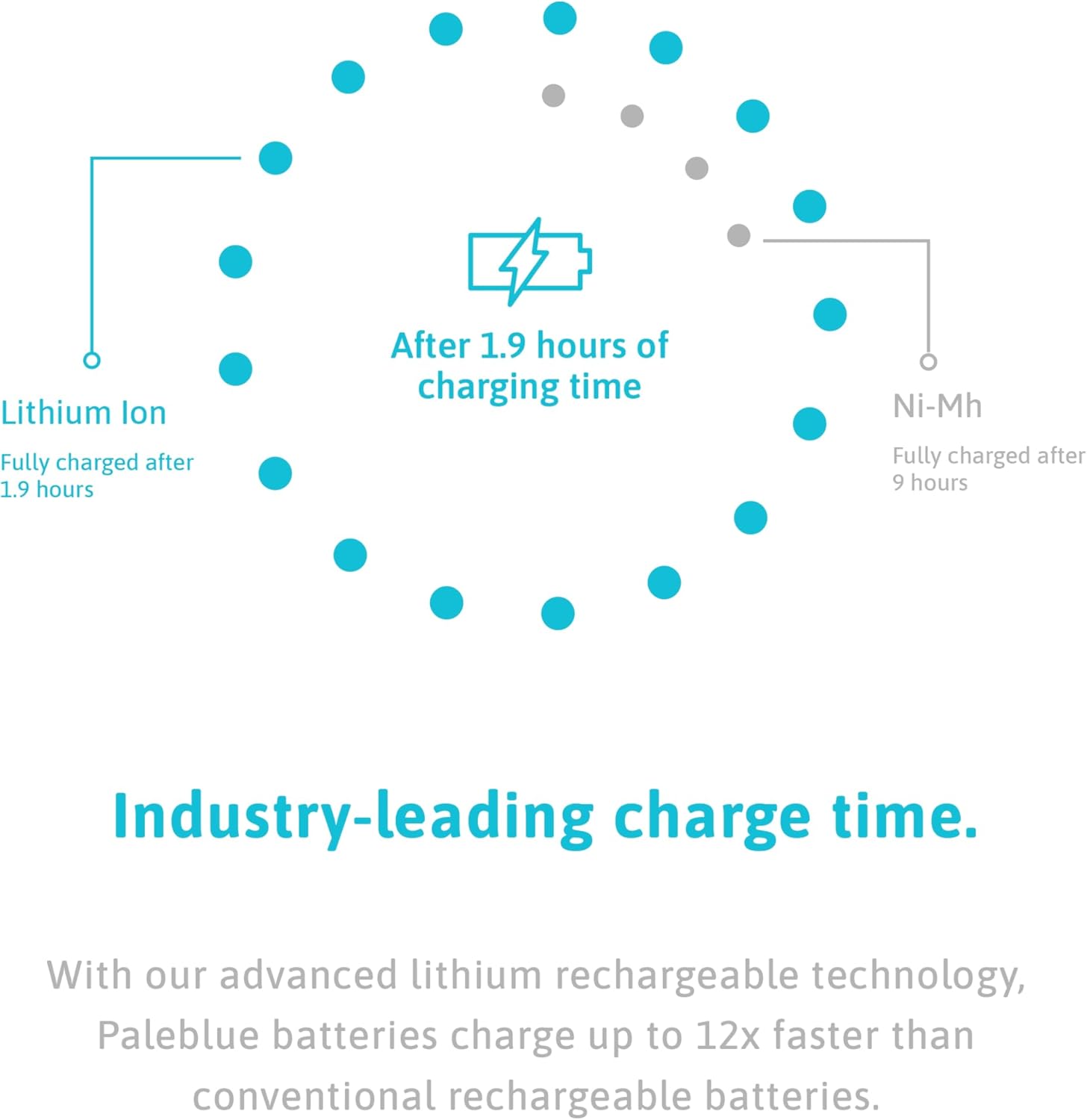 FAST CHARGE TIME: With our advanced lithium rechargeable technology, Paleblue batteries can charge up to 12x faster than conventional rechargeable batteries.