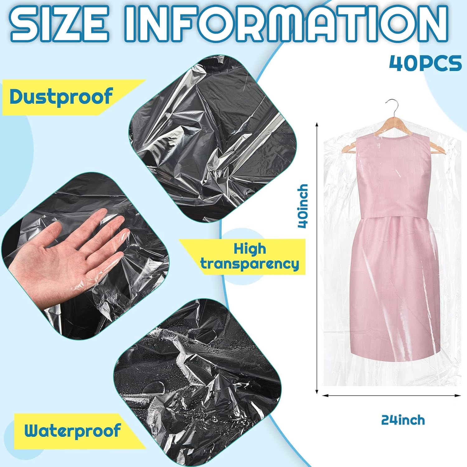 Patelai 40 Pcs 72/40inch Extra Long Garment Bags for Dresses Dry Cleaning Bags for Hanging Clothes Dry Cleaner Plastic Garment for Launderette Wedding Dresses Suits Coats(40 Inch)
