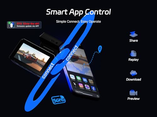 24-Hour Parking Mode- ACC hardwire kit required for this feature. Car dash camera automatically transitions to Parking Mode for continuous surveillance when your car is stationary. Time-lapse Recording efficiently condenses videos, conserving storage. G-Sensor swiftly detects abrupt collisions or impacts, promptly locking the relevant footage to assist you in comprehending any occurrences with your car.