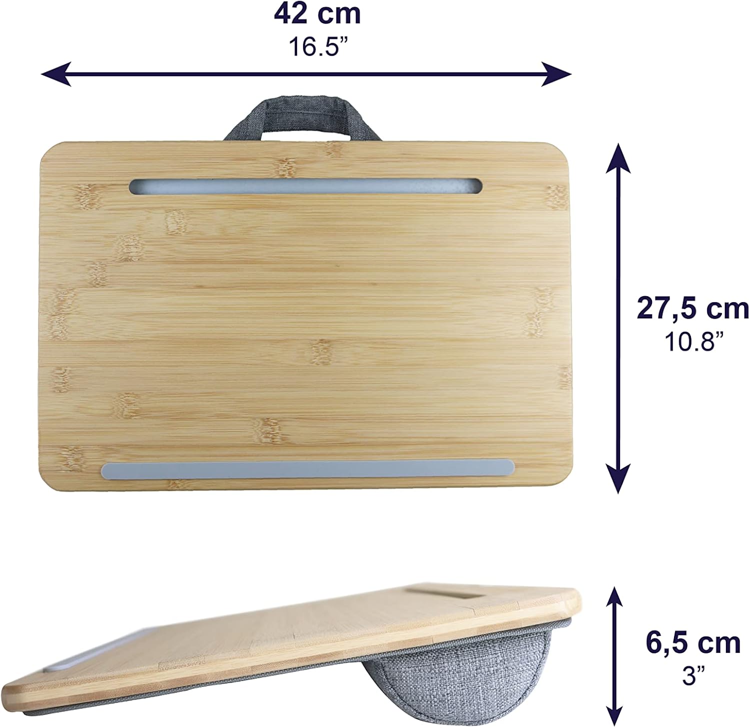 ♥ PORTABLE AND LIGHT: Thanks to its light weight and its polyester handle, the laptop tray for bed can be stored and carried easily. Its practical design makes it perfect for working from the sofa, bed, table or even for carrying it during a trip.