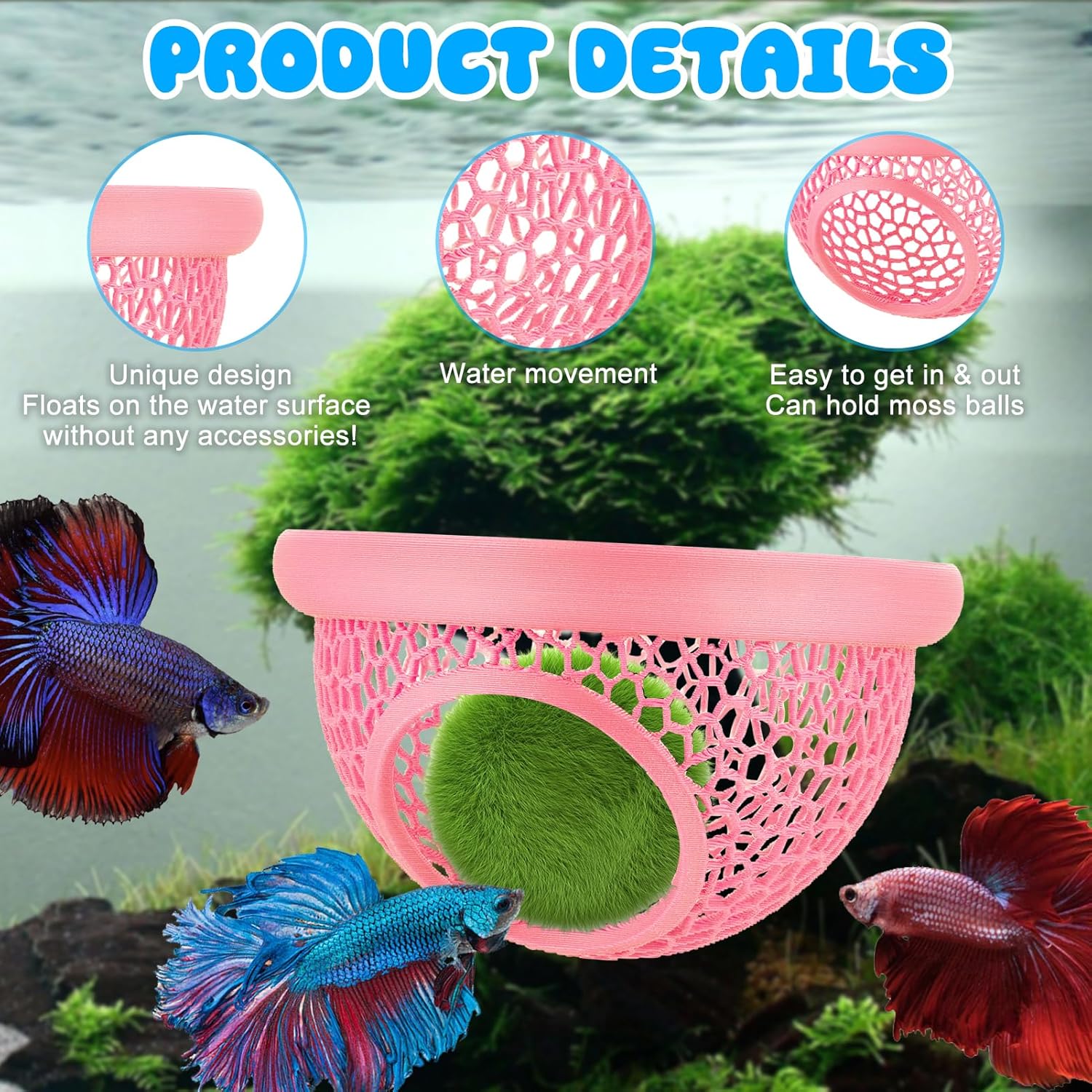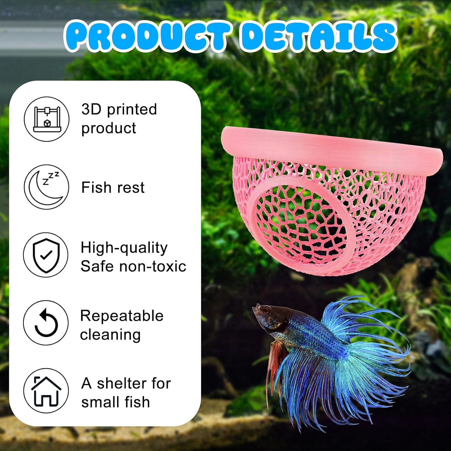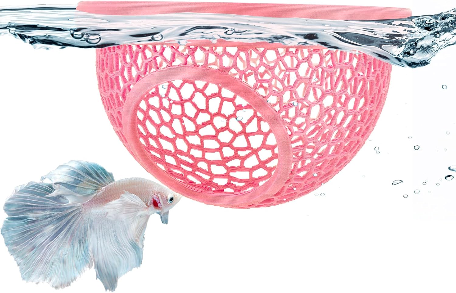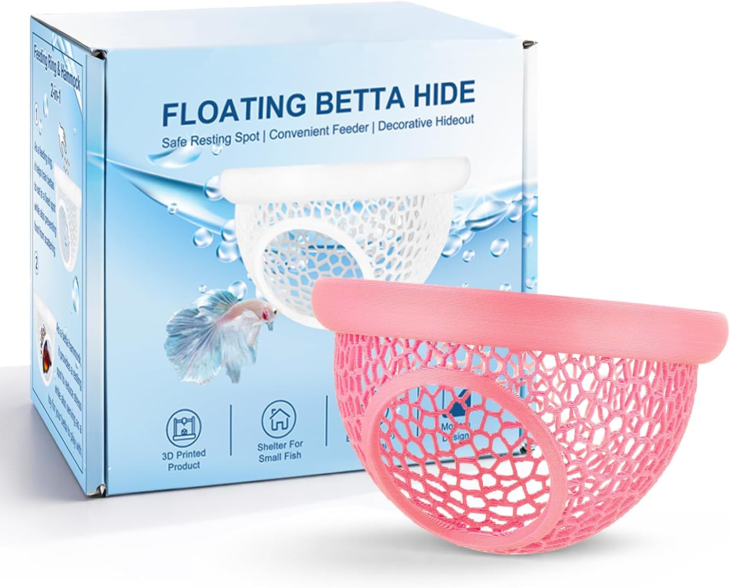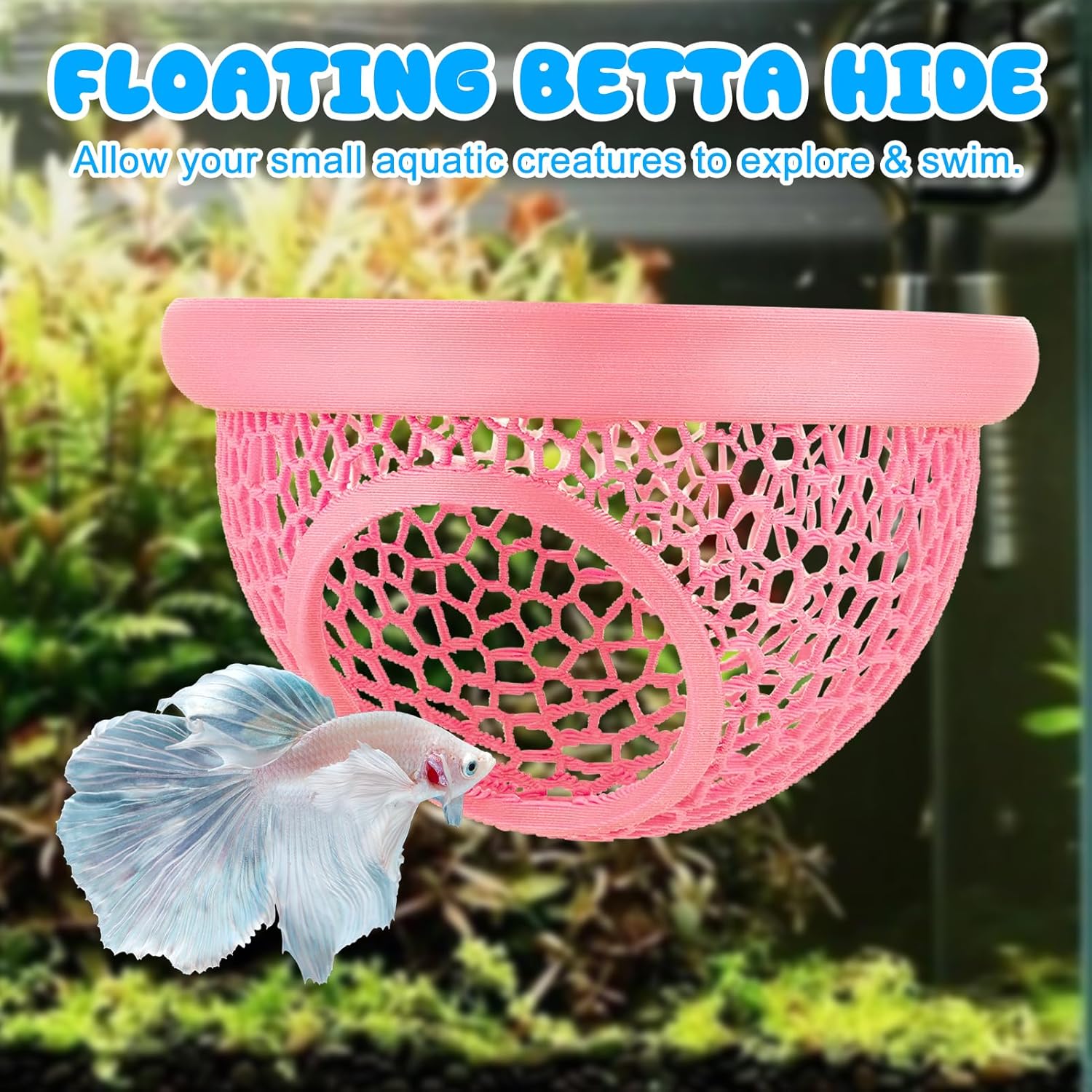 Pink Floating Betta Hide & Shrimp Cave – 3D Printed Aquarium Hammock, Feeding Ring & Resting Spot for Betta Fish, Shrimp & Small Fish (Eco-Safe PLA)