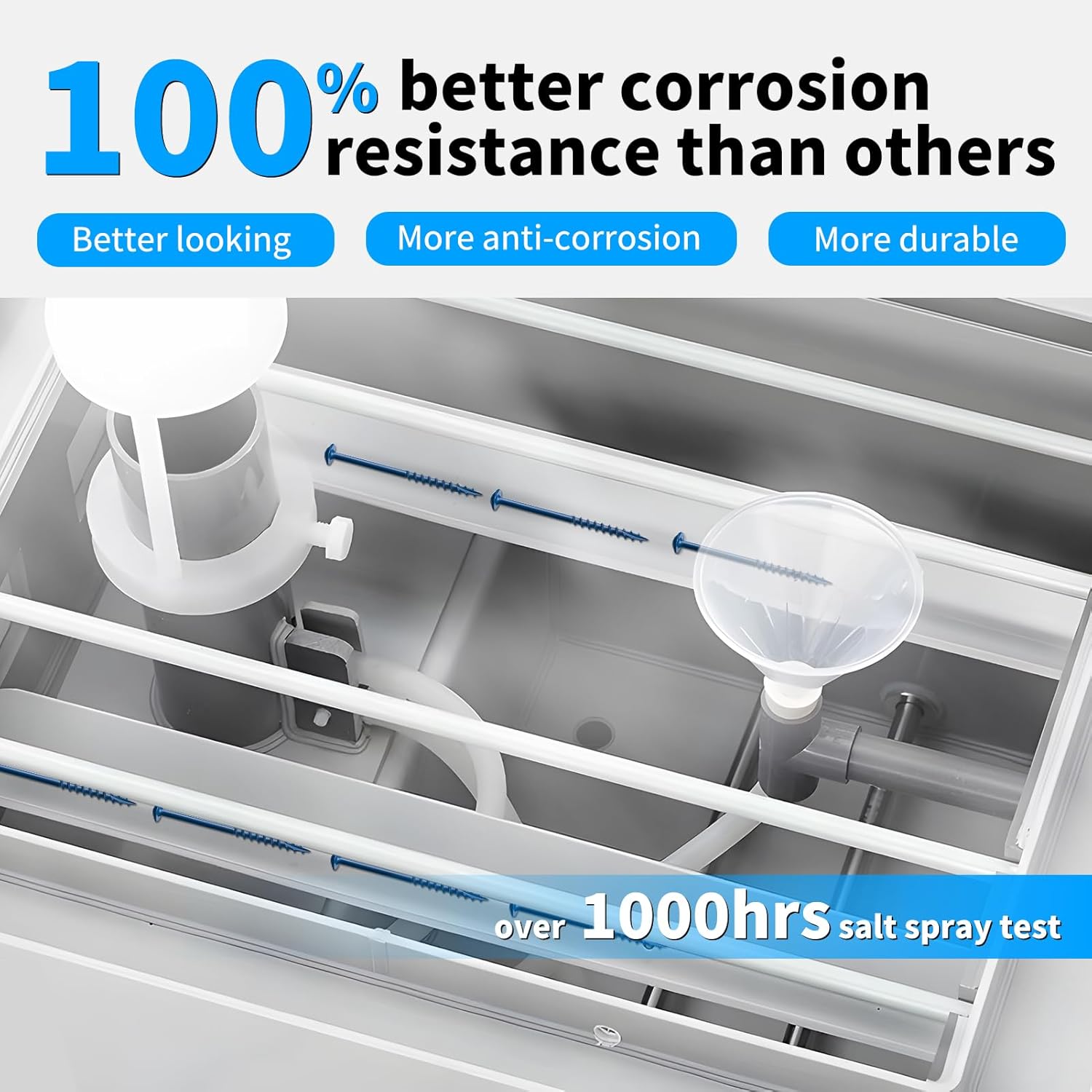 【ABOVE 1000HRS SALT SPRAY TEST】Different from other brands of pocket screws that only have 500-hour salt spray test, FIXLINK blue anti-rust layer pocket hole screws can pass the 1000-hour test under extreme conditions. More shiny than ordinary pocket screws, and has better anti-rust and anti-corrosion performance, allowing your woodwork products to be used outdoors for many years