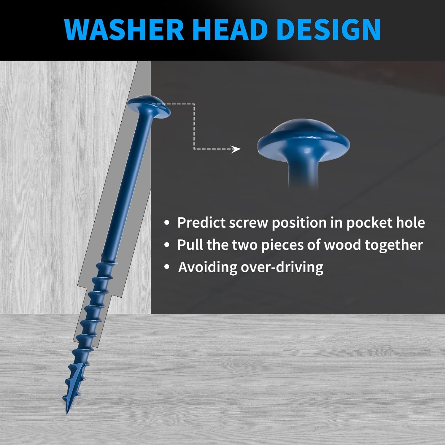 【FOR POCKET HOLE】Optimized pocket hole screws length and washer head are designed for wood joinery in invisible pocket holes. Avoiding over-drilling, and effectively predicting the screw position while drilling