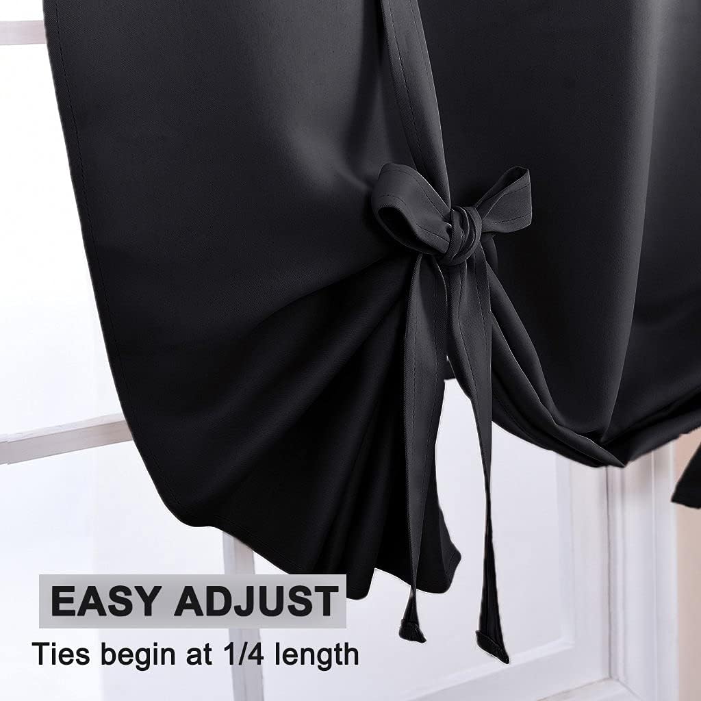 Pony Dance Curtains for Bedroom – Light Block Window Shade Tie Up Curtain Blinds for Privacy Protect Panels in Adjustable Size for Basement, 1 PC, 46 Wide x 63-inches Long, Black