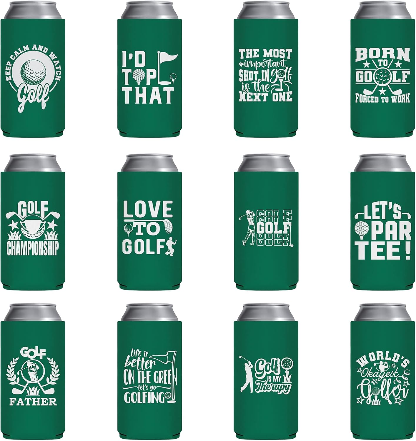 12 Pack Golf Beer Can Coolers, Interesting & Delightful Pattern Design, Ideal Masters Golf Party Decorations