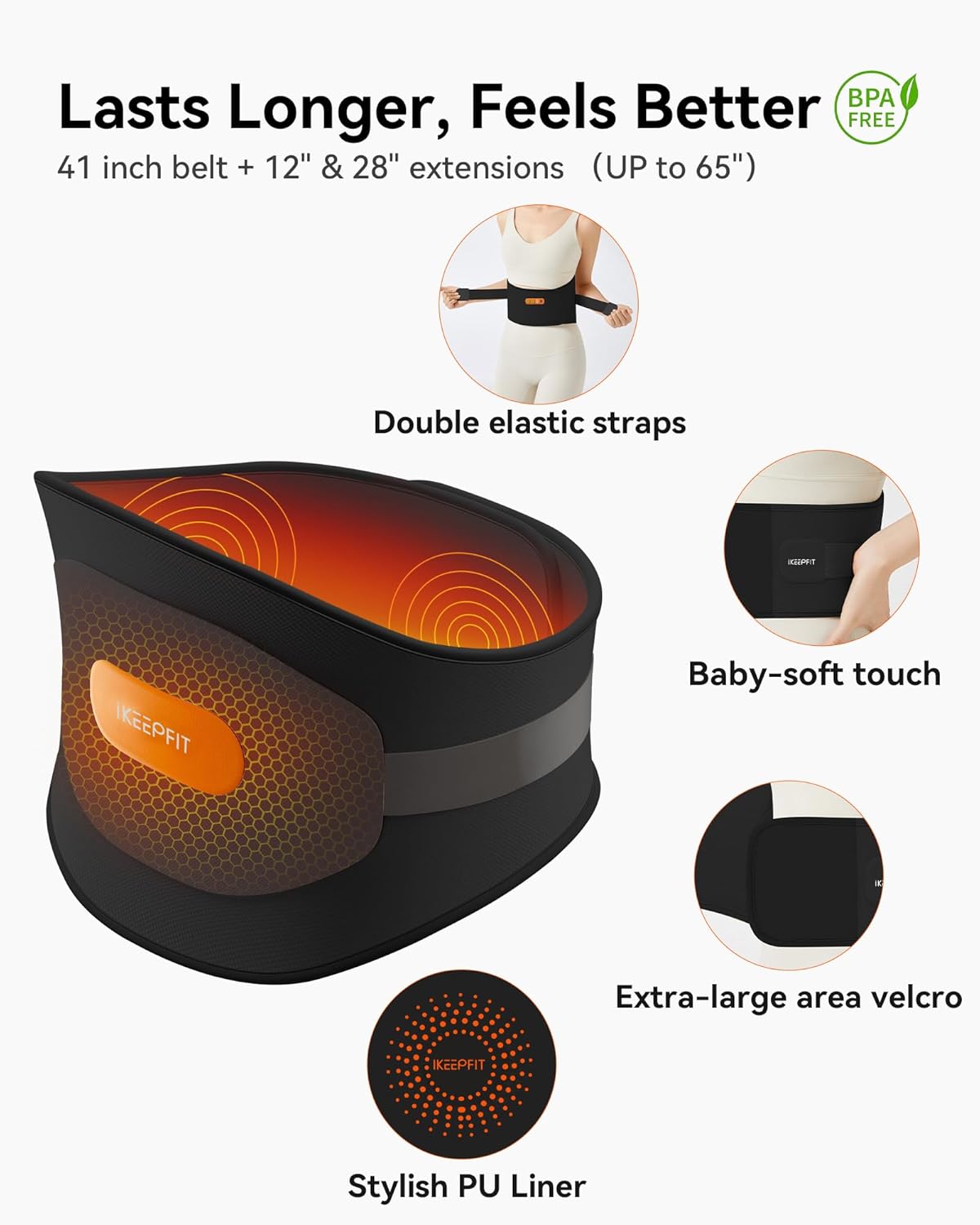 CORDLESS HEATING PAD— Unlike typical heating pads with the hassle of cords or only 5000 mAh bulky power-bank packs,IKEEPFIT MAXwarm 3.0 uses a built-in 8000 mAh battery for true wireless freedom. Our broader, uniform heat area surrounds more angles at once, holding a steadier temperature and warming a larger capillary bed to support local circulation. Can be used on other body parts like butt, legs, or shoulders when tied snugly. Offer two extension straps(12″/28″). Fits most people 28″–70″ waists 90-310 lbs.Unlike USB heating pad, it needs no cable or port.